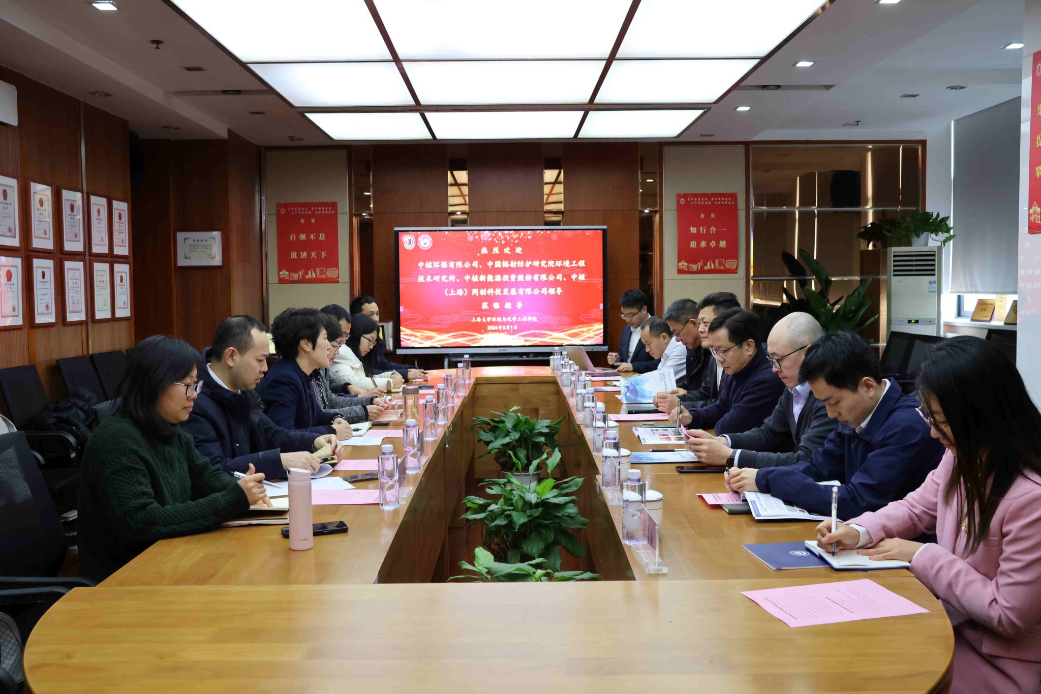 为推动校企产学研用深度融合,让更多的科技成果从“实验室”走向“应用场”,3月1日,中核环保有限公司总经理、党委副书记赵翼鑫等领导一行赴我院调研交流。学院党委书记钱冬英等班子成员热情接待了来访一行。调研交流会由学院党委副书记孙延枫主持。