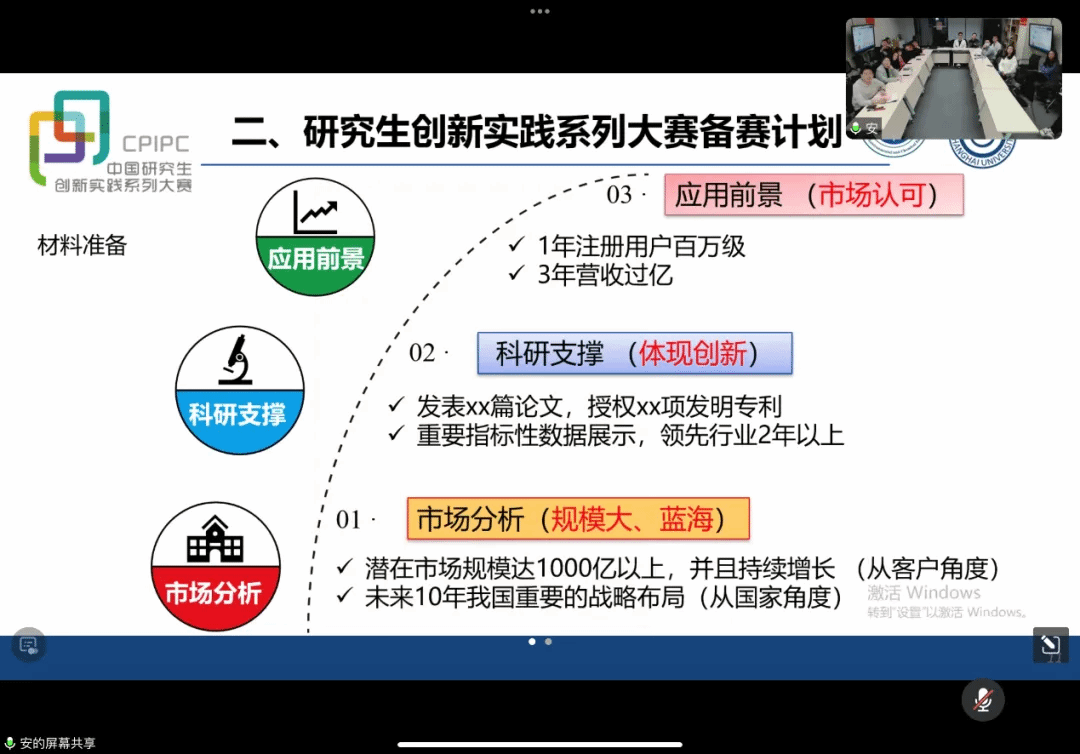 廖焕阁同学分别从赛前准备、比赛流程、时间安排等方面进行介绍,并结合自身经验分享了成功入围各级比赛的注意事项。