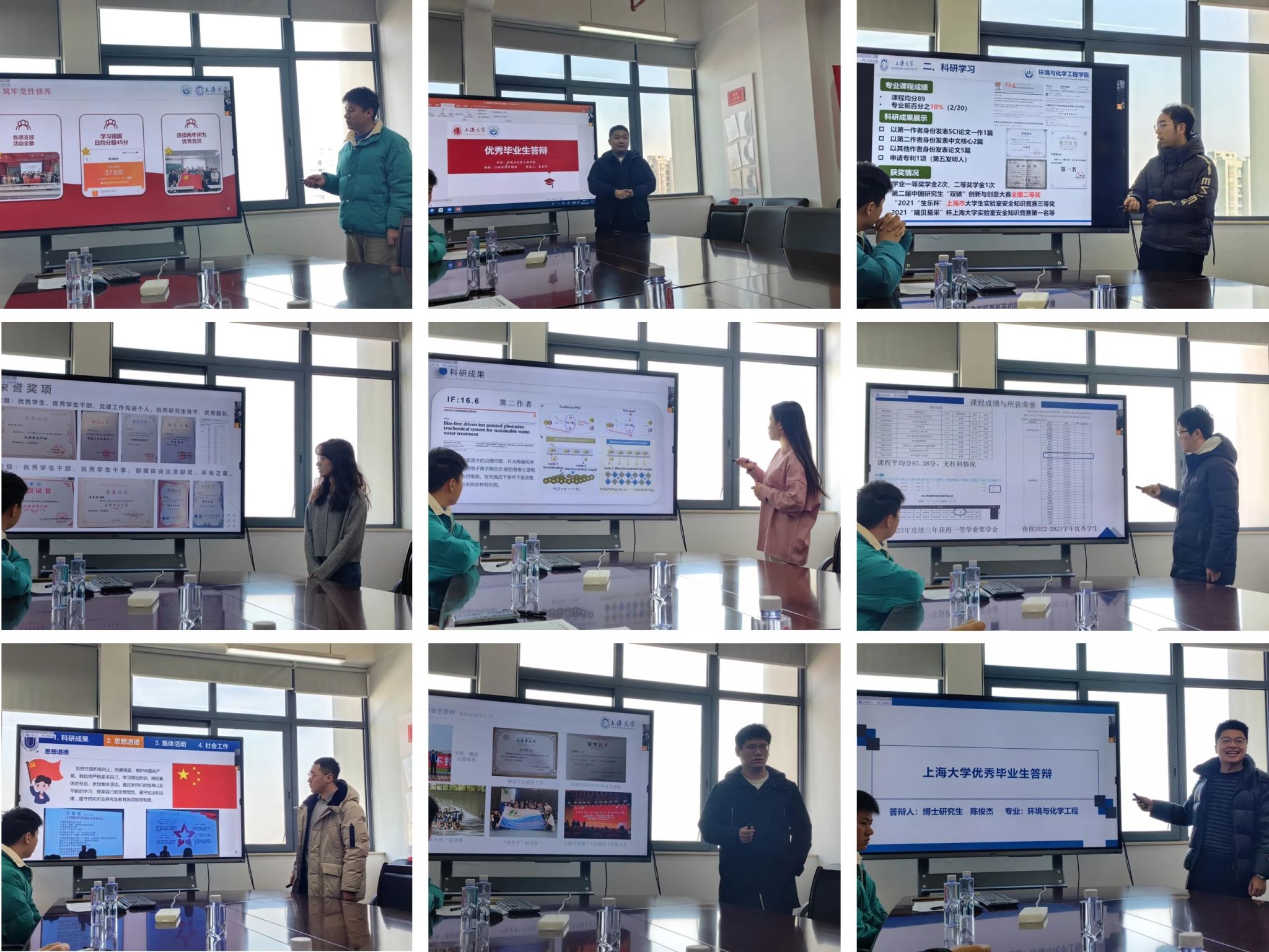 为落实立德树人根本任务,充分发挥典型示范的激励引领作用,培养德智体美劳全面发展的高素质人才和拔尖创新人才。1月26日,环化学院2024届研究生优秀毕业生答辩会于环化楼812会议室举行,学院党委副书记、副院长潘赟,研究生辅导员何雅琴、潘辰苑、蓝梓桀,学院团委书记赵申洁,本科生辅导员朱启宽,学生代表刘宇、张笑冉出席答辩会,共同见证了32位优秀毕业生候选人的答辩风采展示,会议由何雅琴老师主持。