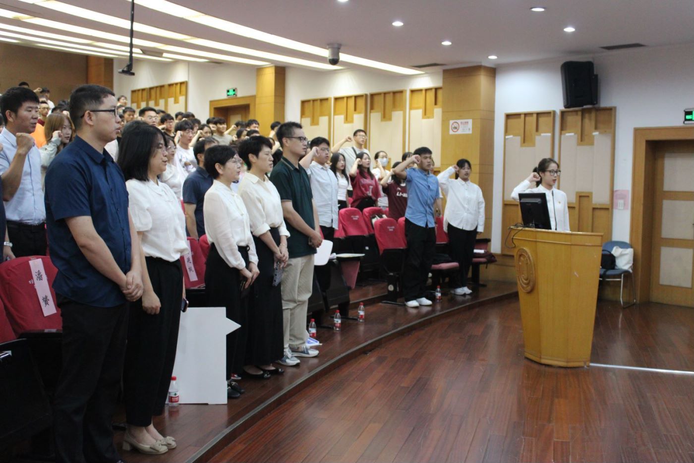 2024级硕士研究生新生林宇暄同学带领全体同学进行诚信承诺宣誓。学术诚信是科学精神的基底,诚信求真是现代科学研究的基石,每一位环化学子都应该坚守道德底线,杜绝一切学术不端行为。