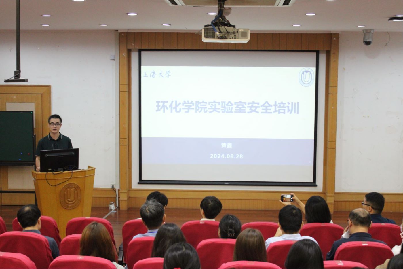 8月28日上午,我院2024级研究生新生大会暨新生第一课于宝山校区J103举行。学院党委书记钱冬英,党委副书记、常务副院长李辉,党委副书记孙延枫,党委副书记、副院长潘赟,副院长黄鑫、黄渊,里斯本学院副院长、环境科学与工程系主任刘强,化学工程与工艺系副主任(主持)张宝华,纳米化学与生物学研究所所长曹傲能,射线应用研究所副所长(主持)徐刚,绿色化工与清洁能源研究所副所长刘金亮,纳米化学与生物学研究所副所长王亮,研究生教学秘书宋子娟以及研究生辅导员何雅琴、潘辰苑、蓝梓桀出席。本次大会由2024级硕士研究生新生许雪静和雷杨铭主持。