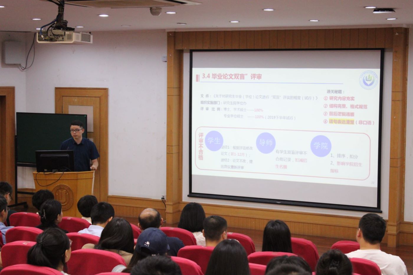 副院长黄渊老师从365英国概况、课程考核、毕业要求、评奖评优等方面向新生们详细介绍了研究生期间的基本要求和管理制度。他还提到,研究生需要处理好三个关系:同学与同学之间、学生与导师之间、科研与生活之间的关系;拥有两个能力:科研能力和社会能力。