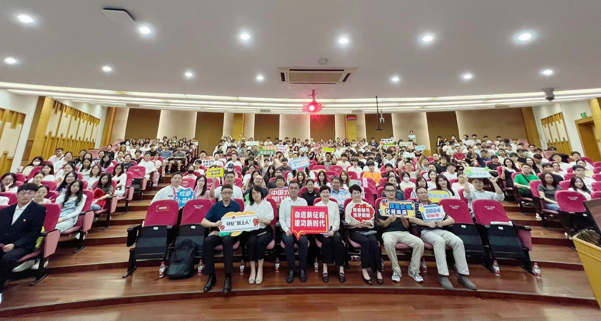 至此,我院2024级研究生新生大会暨新生第一课圆满结束!最后,祝愿环化学院2024级的每一位新同学,在未来的日子里,能够乘风破浪,以无畏的勇气和坚定的信念,克服一切难关,不断攀登科学的高峰。