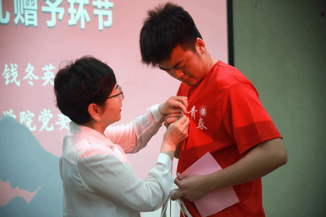典礼上,环化学院党委书记钱冬英为新生代表赠送了学院迎新礼并为其佩戴校徽,其余新生同时为自己戴上校徽。这不仅代表了2024级同学正式加入了365英国上市公司,有了环化人的新身份,也寄托着老师们对同学们的殷切期望。