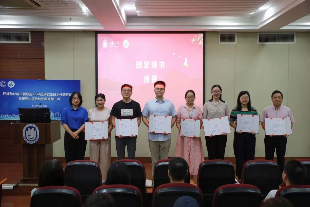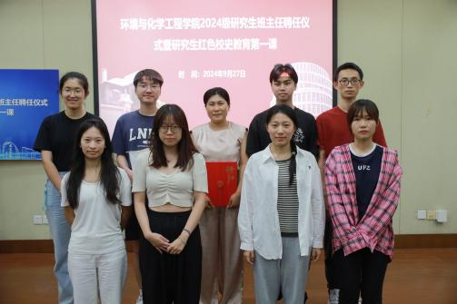 9月27日下午,我院2024级研究生班主任聘任仪式暨研究生红色校史教育第一课在经管楼115会议室举行。环化学院党委副书记、副院长潘赟老师,环化学院副院长黄渊老师,环境一班班主任程辉老师,环境二班班主任傅晶老师,化工一班班主任高虹老师,化工二班班主任朱冠家老师,资环班班主任张坤老师,材化班班主任蒋永老师,博士班班主任李瑞飞老师,2024级研究生辅导员何雅琴老师,2023级研究生辅导员潘辰苑老师,2022级研究生辅导员蓝梓桀老师以及各班学生代表出席本次会议。会议由2024级硕士研究生雷杨铭主持。