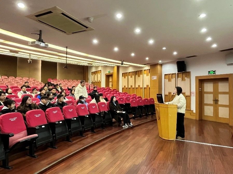 随后,宋子娟老师就毕业论文相关流程与注意事项进行了详细讲解。她着重介绍了最新的盲审政策,告知同学们要严谨对待盲审,遇到问题及时与导师、教学秘书沟通;还讲解了毕业答辩与学位申请流程,提醒同学们务必关注时间节点,按时提交相关材料,确保顺利毕业。