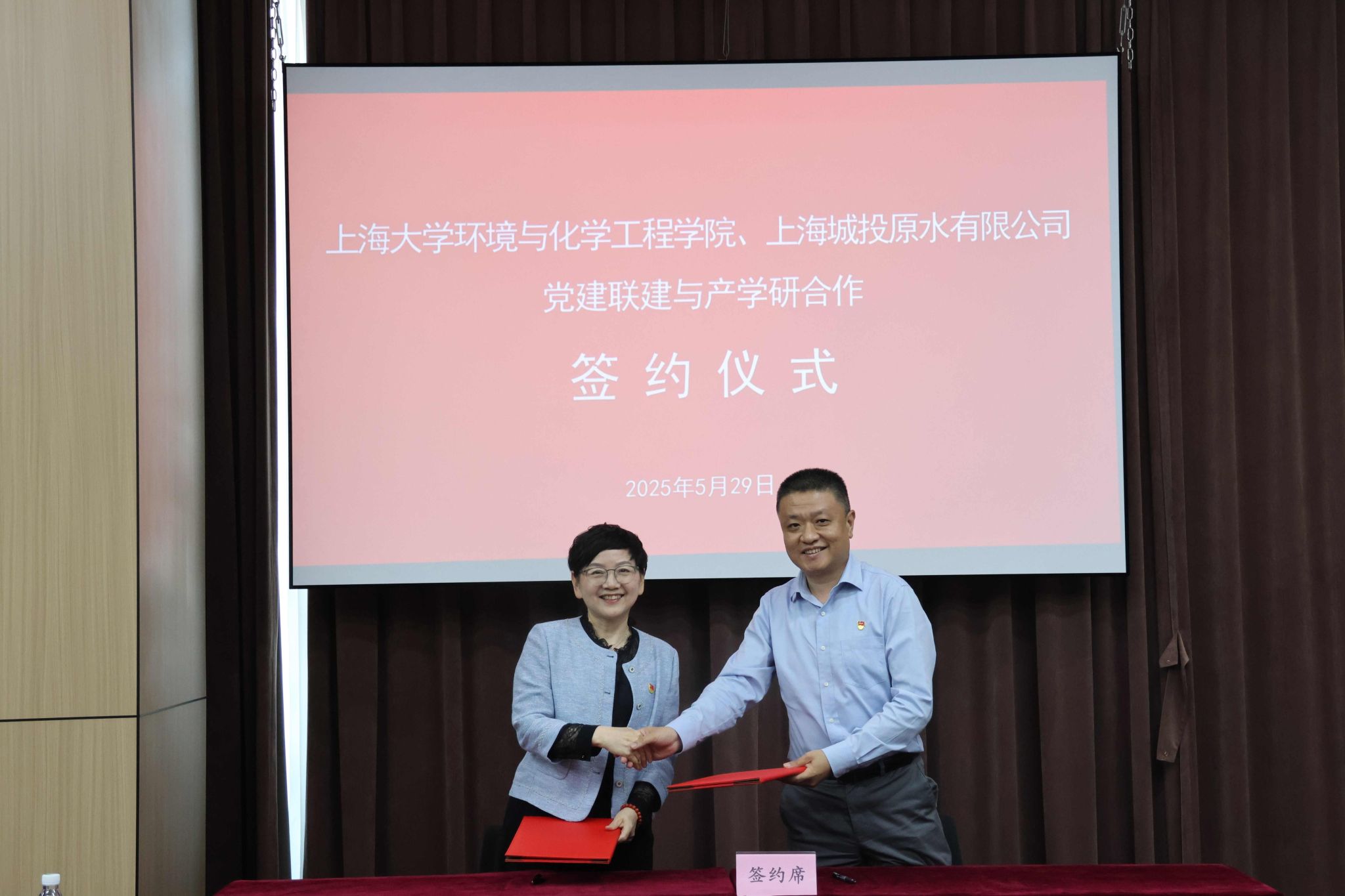 5月29日上午,我院与上海城投原水有限公司在青草沙水源地举行党建联建与产学研合作交流会,双方就党建引领、人才培养、科技创新、学生就业等方面进行了深入探讨和交流,并签署了相关合作协议。我院党委书记钱冬英等班子成员与上海城投原水有限公司党委副书记、董事长、总经理朱宜平,党委书记、副总经理孟磊等共同出席了本次合作交流会。会议由原水公司党委书记、环化学院 2000 级校友孟磊主持。