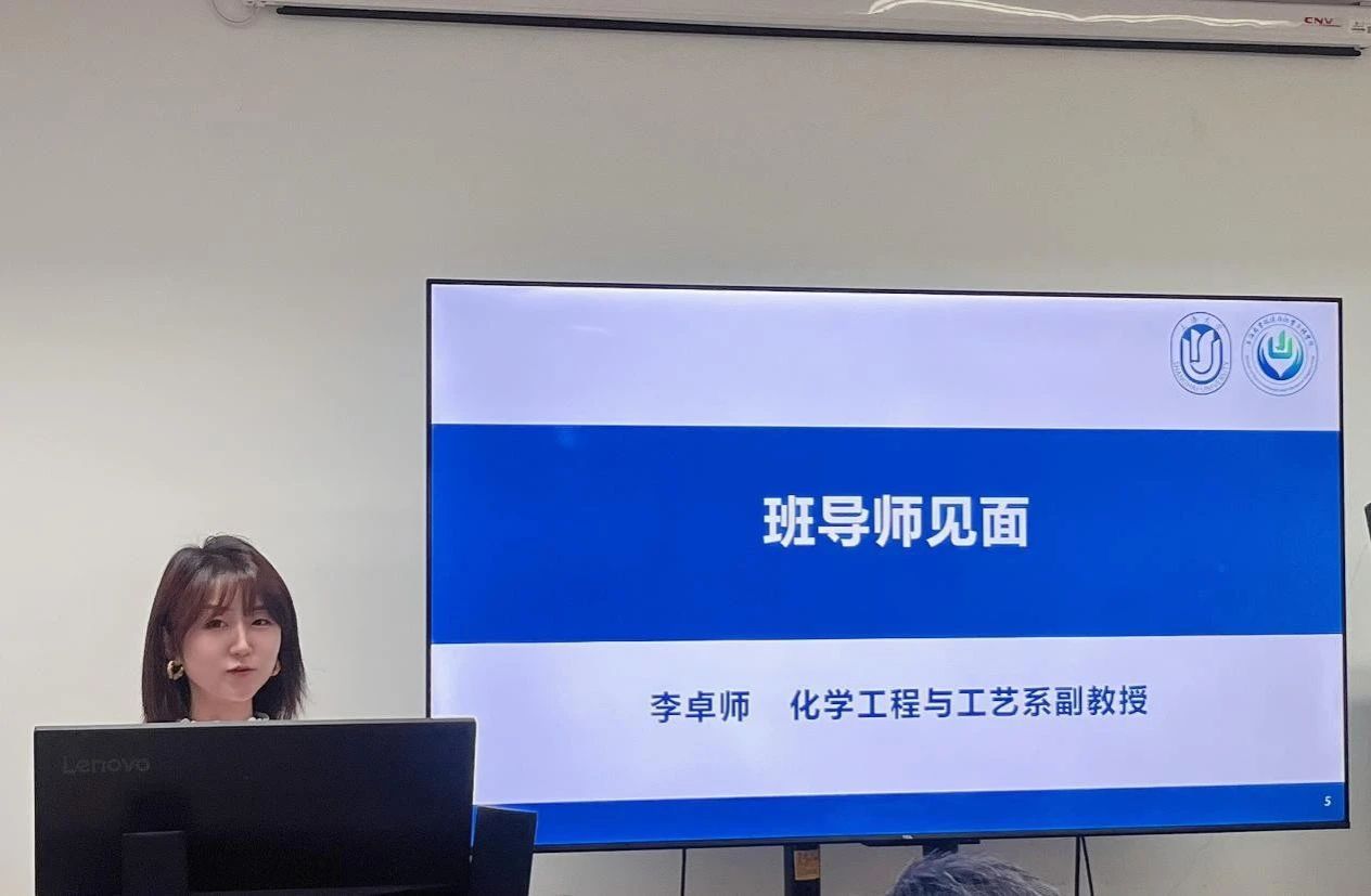 化工系副教授李卓师老师在自我介绍后,向同学们分享了自己的求学背景、对专业的认识,也期待和同学们共同成长。
