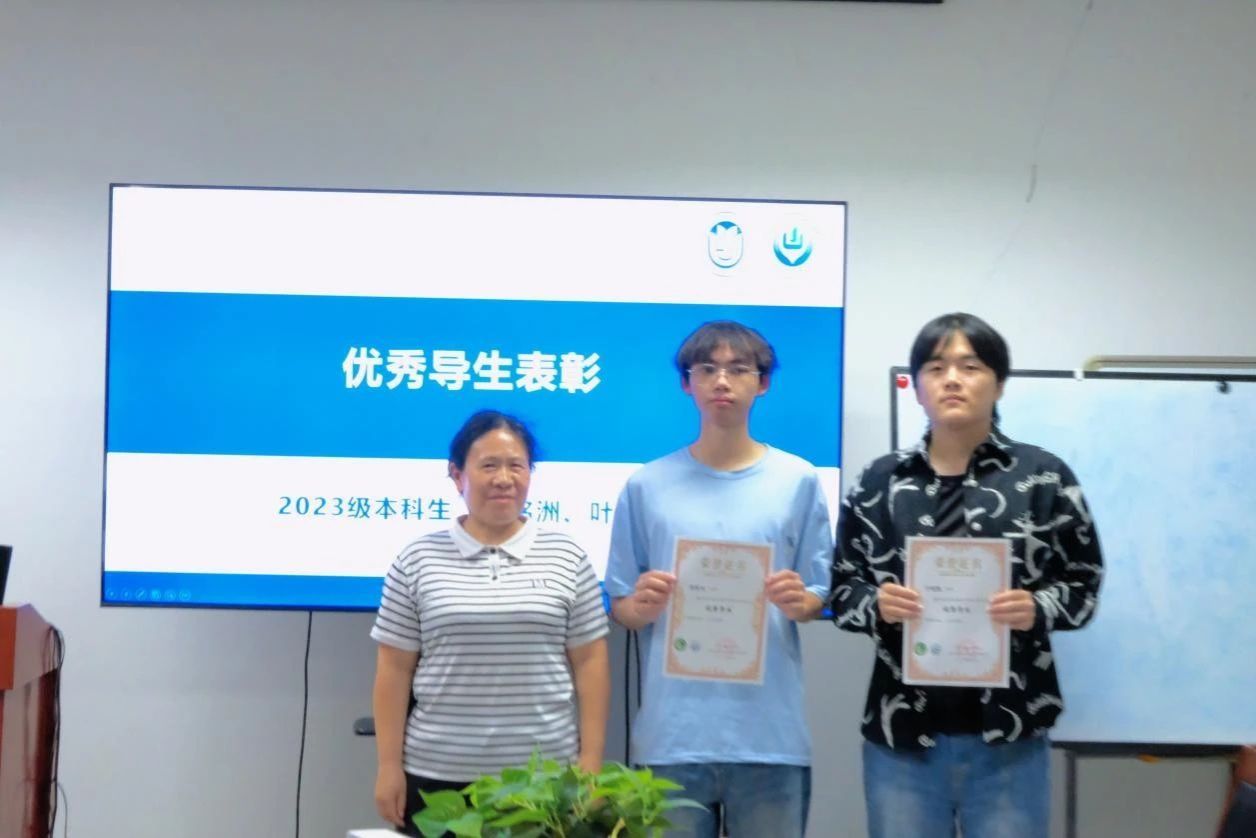 新生对于专业的认知离不开导生的帮助,张宝华老师为23级本科生杨铭洲与叶皖豫同学颁发优秀导生证书。