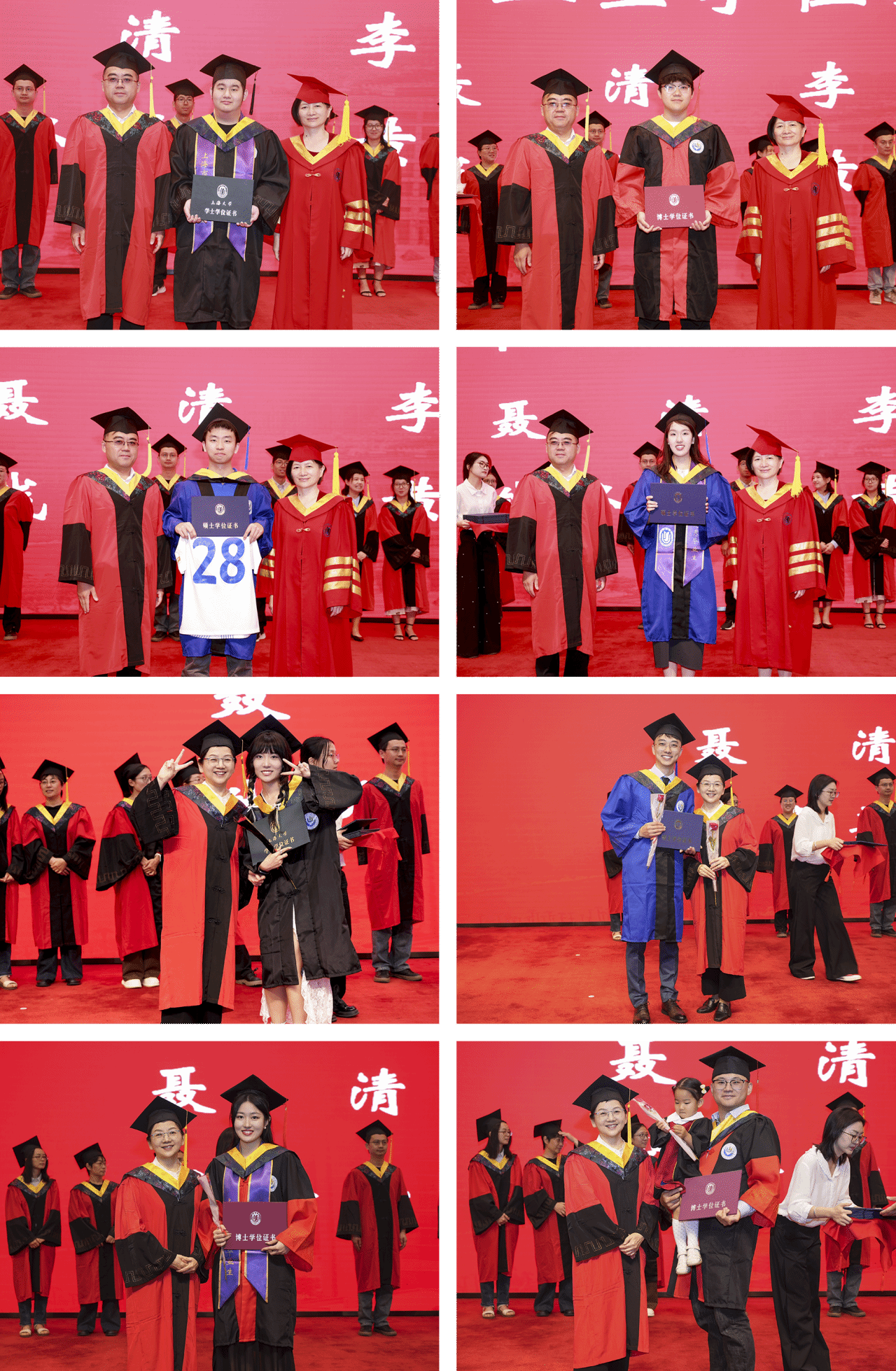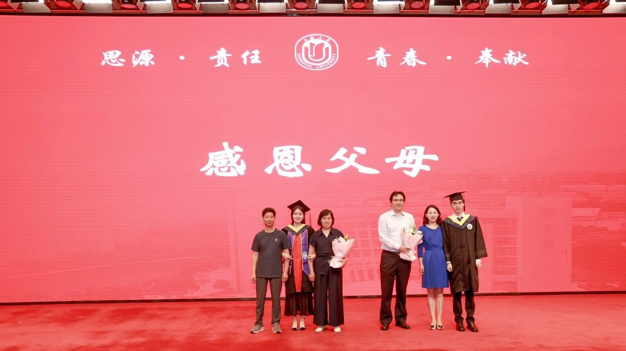 父母之爱,重若泰山。从懵懂幼年到青春年华,父母的辛勤付出,为我们撑起一片无忧的成长天空。岁月变迁,我们由稚嫩走向成熟,父母则由挺拔逐渐衰老。他们站在故乡的原点,以热切的期盼与真挚的祝福,目送我们走向远方。为感激父母的养育之恩、陪伴之情,博士毕业生张媛和本科毕业生李恒的父母作为家长代表上台,接受同学们的鲜花与致意。