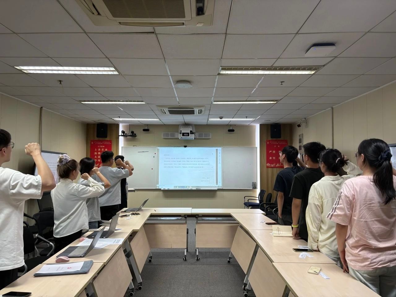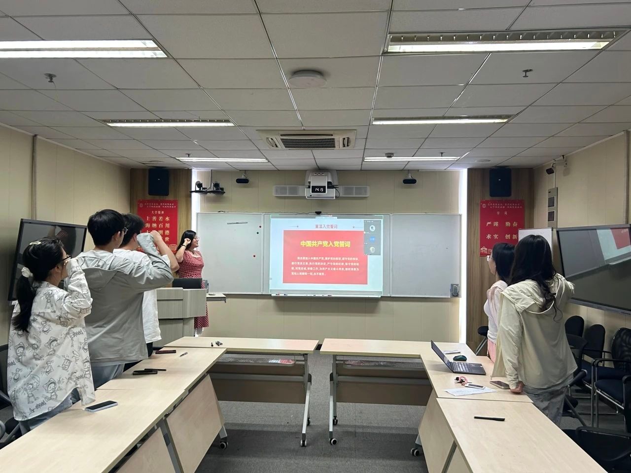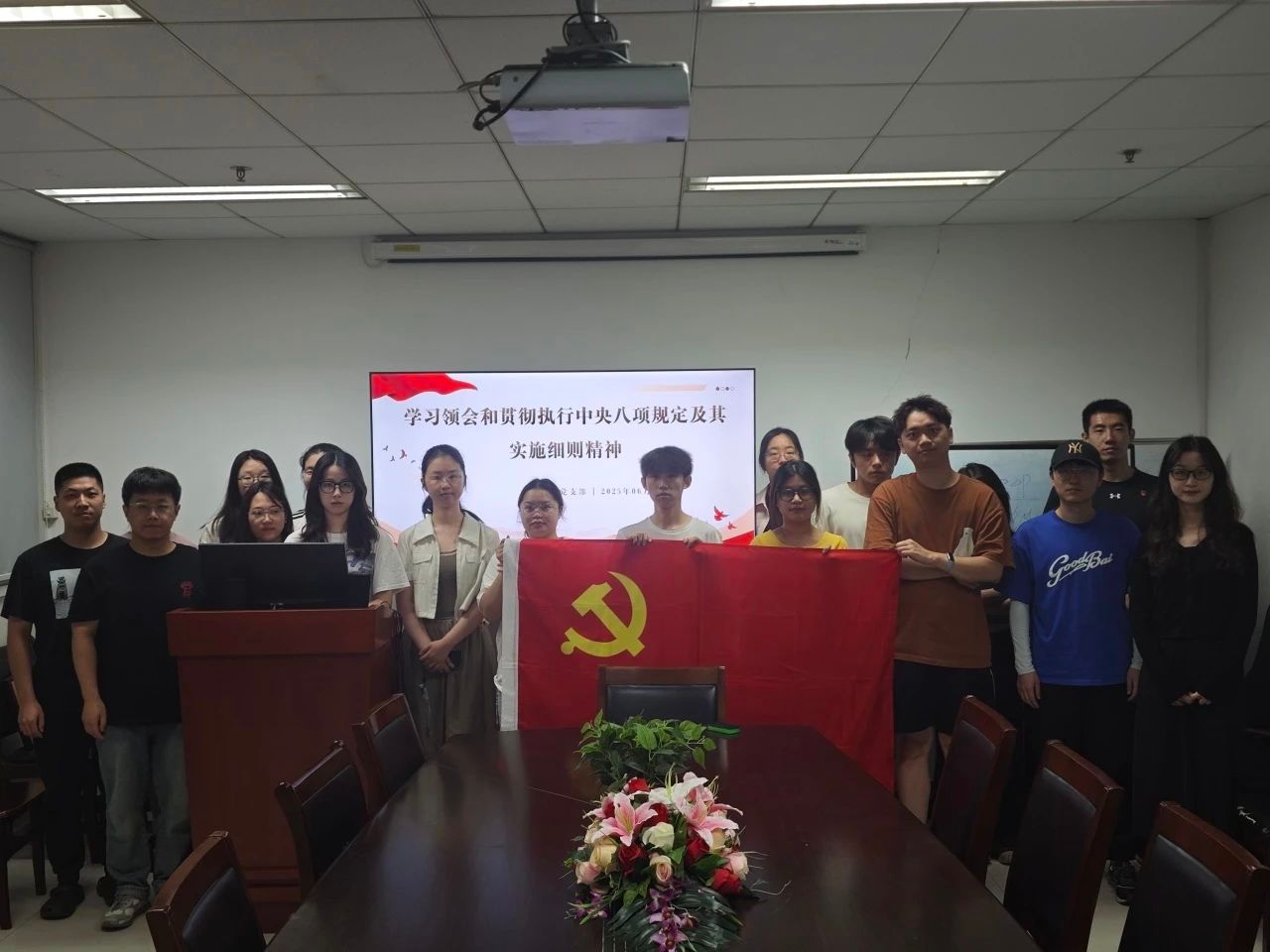 党课结束后,全体支部党员面向党旗重温入党誓词,坚定永葆党员本色、践行初心使命的决心。大家一致表示,将以此次活动为契机,自觉将中央八项规定精神内化于心、外化于行,持续巩固拓展作风建设成效,以奋发有为的精神状态和求真务实的优良作风参与到科学研究和社会实践中去。