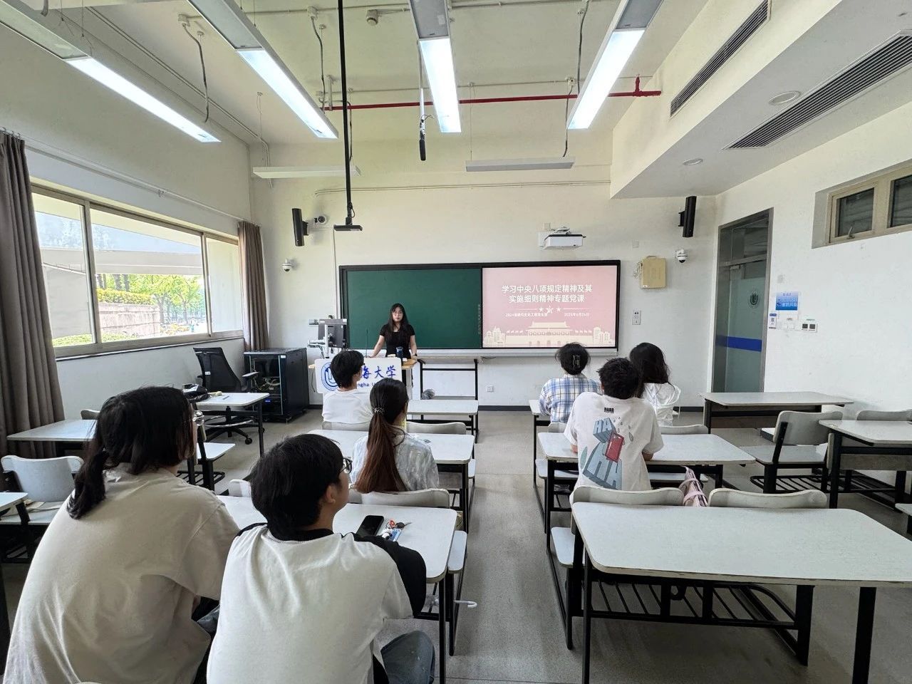2023级研究生环境一班党支部于近日组织开展“筑牢中央八项规定堤坝,推进作风建设常态化”主题党日活动。党支部书记洛宇围绕中央八项规定精神讲授专题党课,全面解读中央八项规定的出台背景、核心内容和深远意义,强调八项规定为党员干部划定了“硬杠杠”、设立了“高压线”,已从“铁规”变成“常态”,不仅管住了“关键少数”,也激励着广大党员立足本职岗位,廉洁奉公、务实为民。