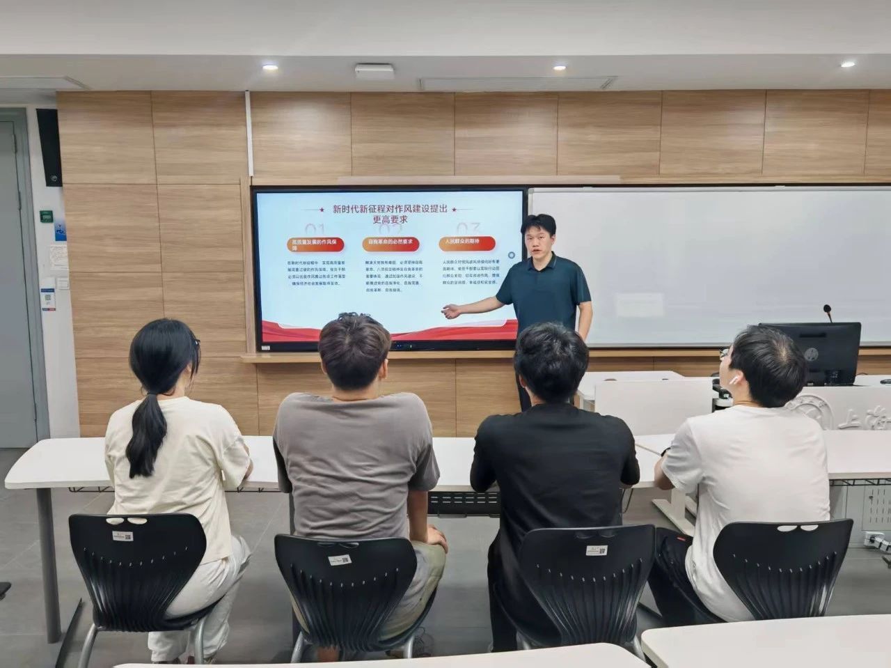 6月25日,我院研究生党建中心举行深入贯彻中央八项规定精神学习教育专题党课。会上,我院党委副书记、副院长潘赟老师带领与会同志深入学习领悟习近平总书记关于加强党的作风建设的重要论述精神,系统总结新时代作风建设取得的显著成效与宝贵经验;她聚焦整治重点,围绕28个具体问题清单深刻剖析违反党规党纪带来的严重危害,教育引导党员进一步明晰纪律红线、筑牢思想防线;最后,潘赟老师就抓实整改整治工作、持续深化作风建设提出明确要求。她强调,作风建设永远在路上,必须常抓不懈、久久为功,为学院事业高质量发展提供坚强保障。
