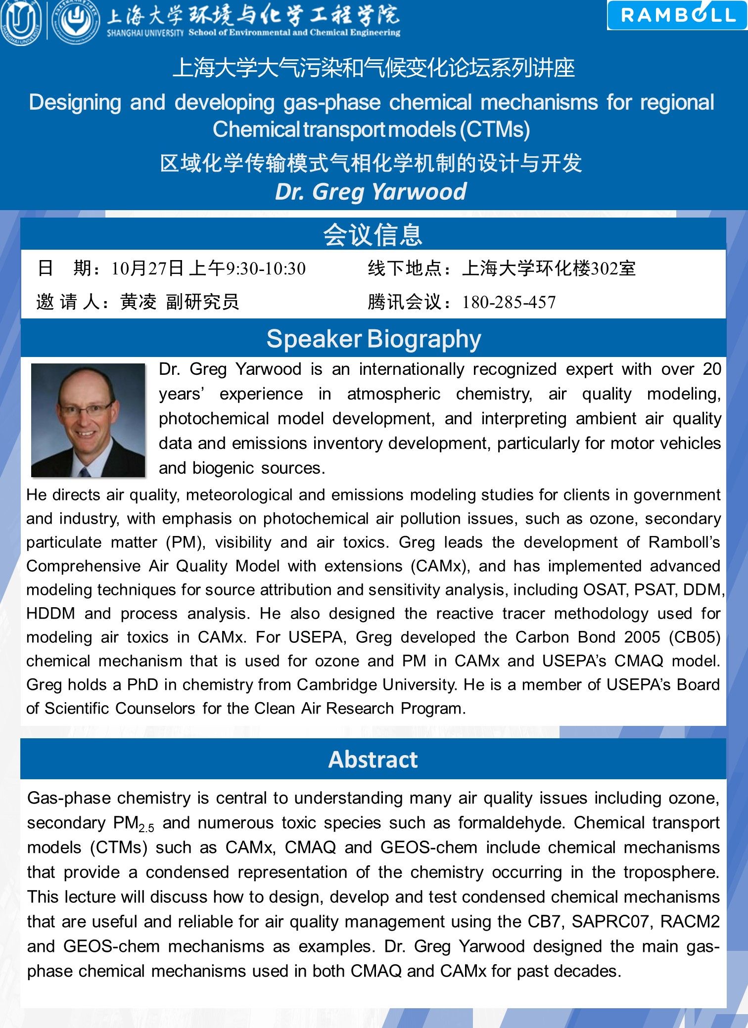 报告题目:区域化学传输模式气相化学机制的设计与开发