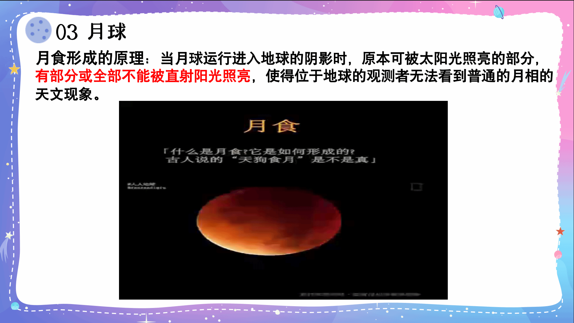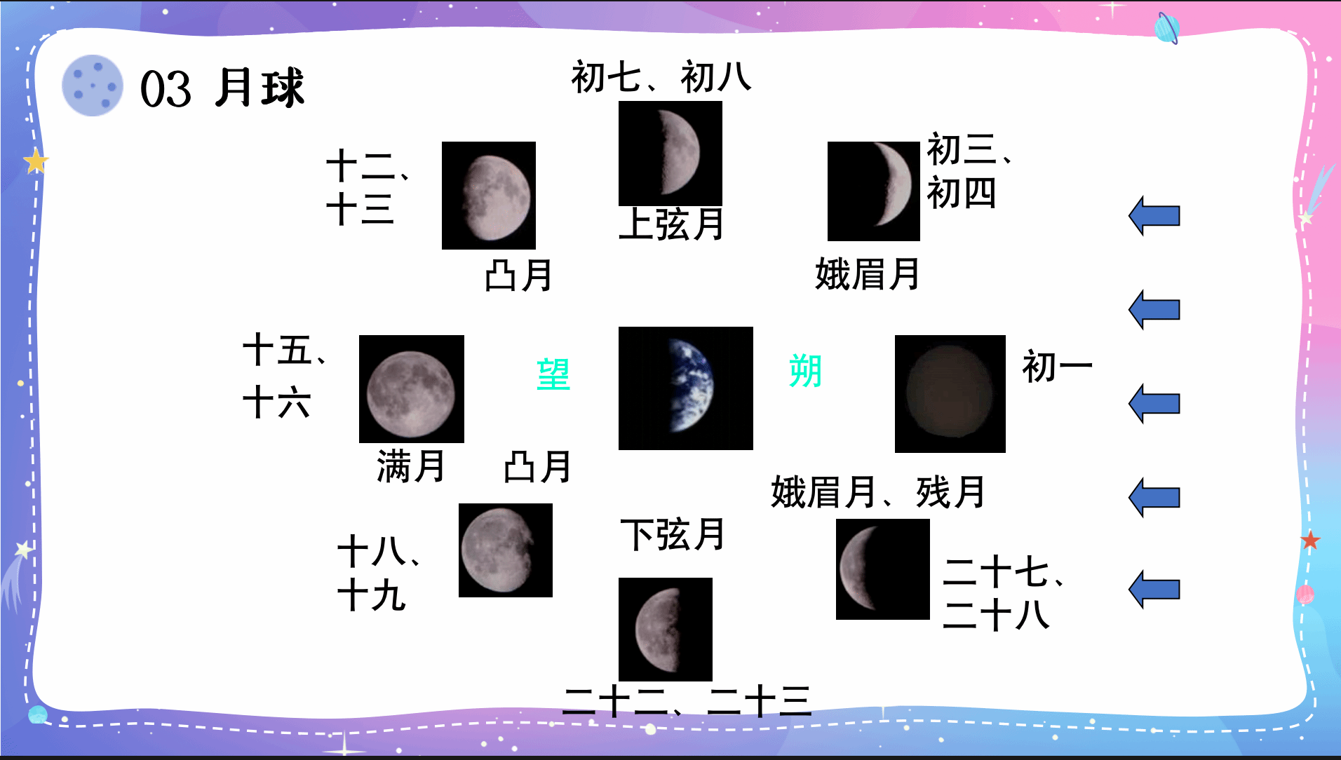 课程过半,讲师宋宜瑾以播放视频的方式介绍起太阳的内部结构以及“神秘“的太阳活动,向同学们展示出了宇宙无穷的魅力,同学们一个个听得聚精会神。最后,讲师宋宜瑾以中秋望月怀人的词引出对月球的介绍,介绍了月相的形成,并以互动的方式让大家排序:蛾眉月、上弦月、凸月、下弦月、残月、满月。在整个宣讲过程中,孩子们的踊跃发言,宣讲人的耐心讲解与回应,让整个课程进展顺利。