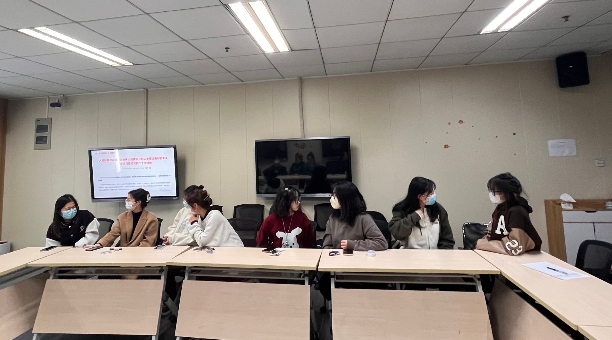 分享的最后,支部党员们就进博相关问题向华靖同学踊跃发问。华靖同学向大家传授了关于进博志愿者面试的小技巧,鼓励大家在下一届进博会志愿服务中发光发热,以青春激情绽放绚烂光彩。