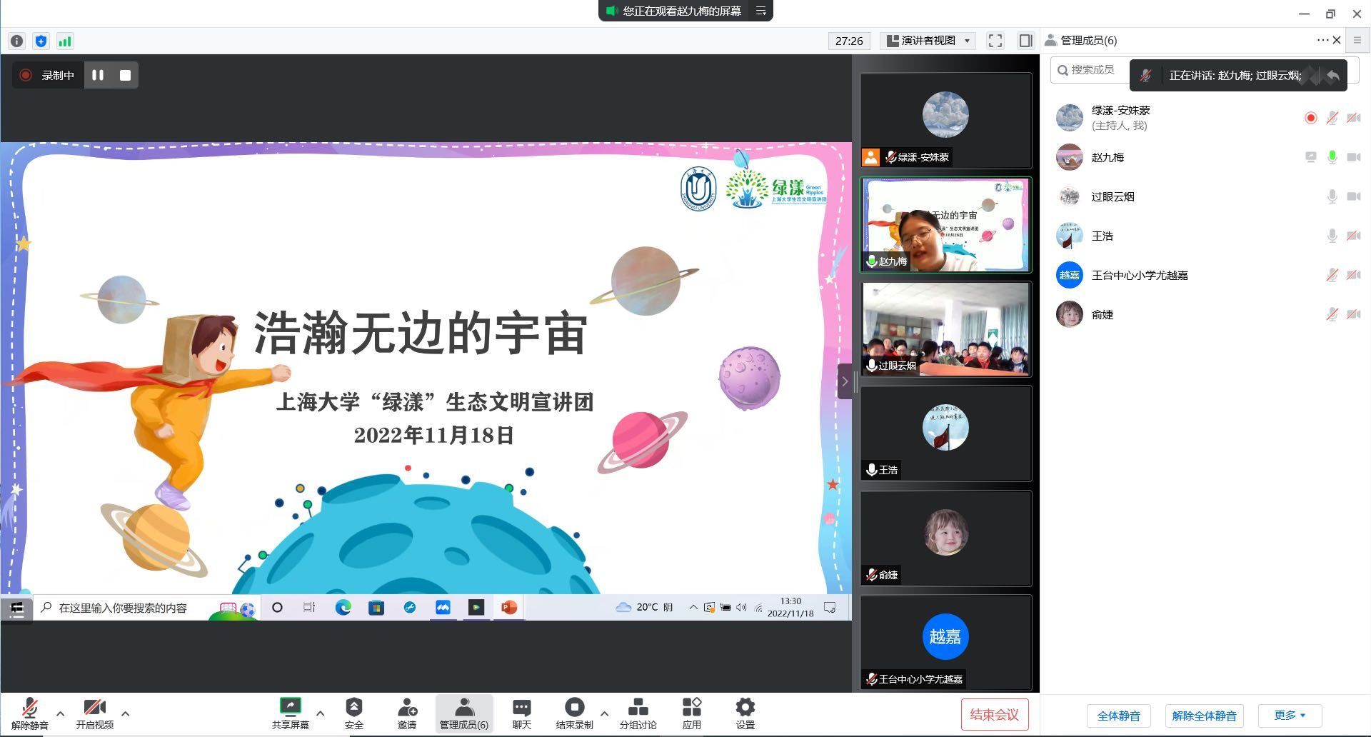面向甘肃省临夏回族自治州永靖县王台镇王台中心小学的云支教课堂也同时展开,由赵九梅讲师担任本次“浩瀚无边的宇宙”主题教育的主讲人。