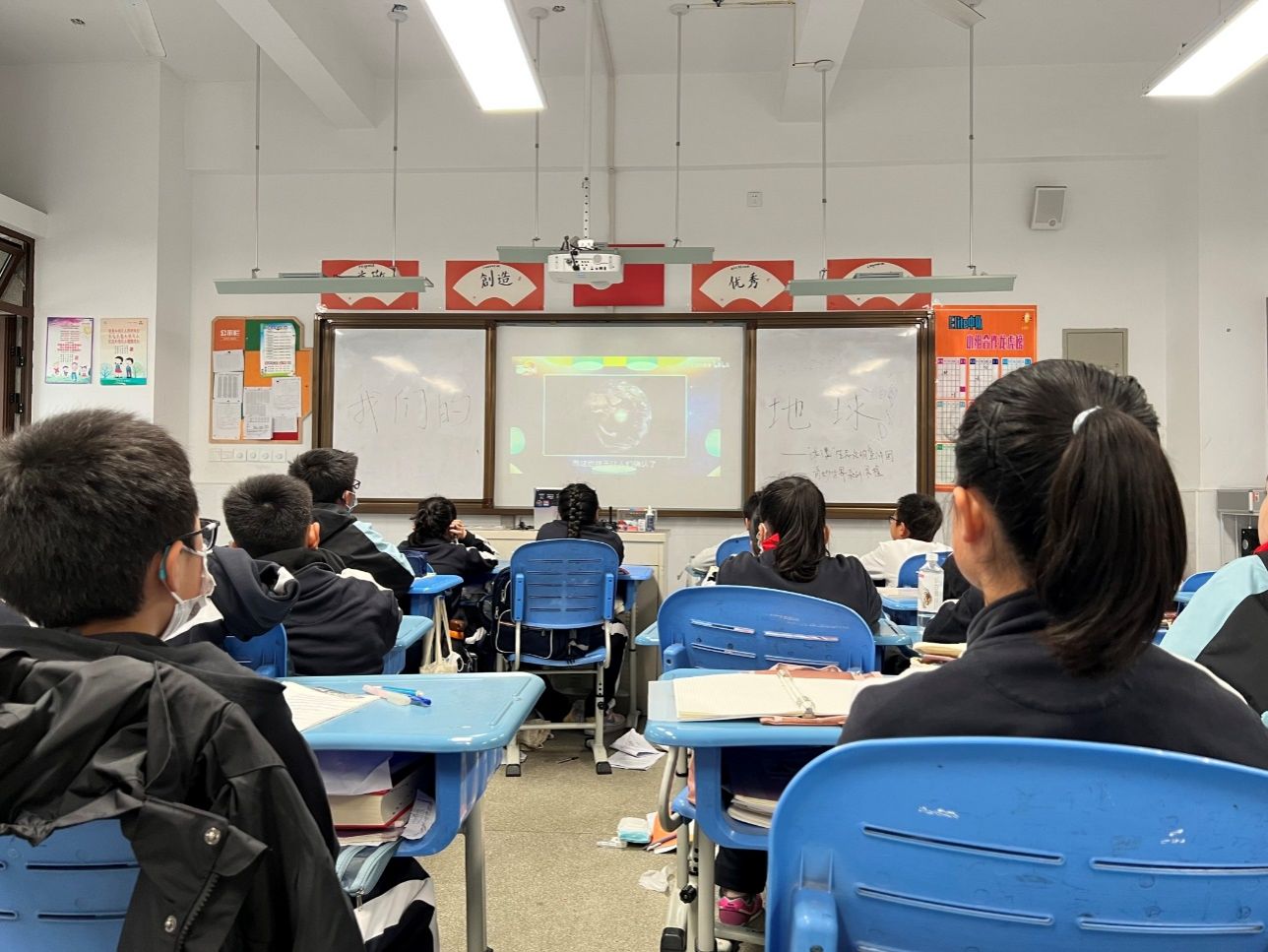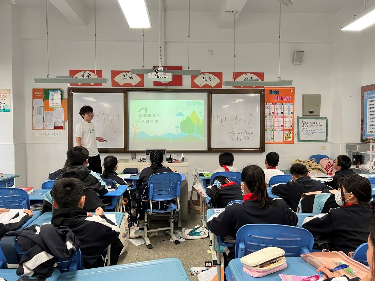 等了足有一个多月了啦,今天真的很高兴很荣幸在嘉定德富路中学开始了我的第一堂宣讲课。刚开始,带着大家一起回顾了上堂课关于宇宙的知识清单,并帮助大家解决月相和月食存在的困惑。之后我开始为大家讲解《我们的地球》一课,刚开始通过一个简短的视频让大家对地球有了个初步的认识。之后我又通过地球的演变,地球的认识过程,地球的概况三章,为他们讲解地球的发展历程,以及人们对于地球的不断认识,并最终认识到地球是个球体的这一过程,然后一起了解了地球的半径,表面积和赤道周长。而且,小朋友们也知道了坐地日行八万里这个由来。课上小朋友们也是积极互动,争相举手去回答问题,我也切实感受到孩子们满满的求知欲和好奇心,希望下次能有机会为孩子们带来更多丰富有趣的知识!