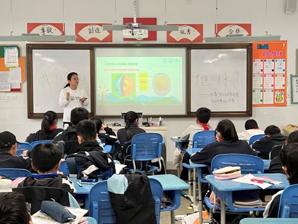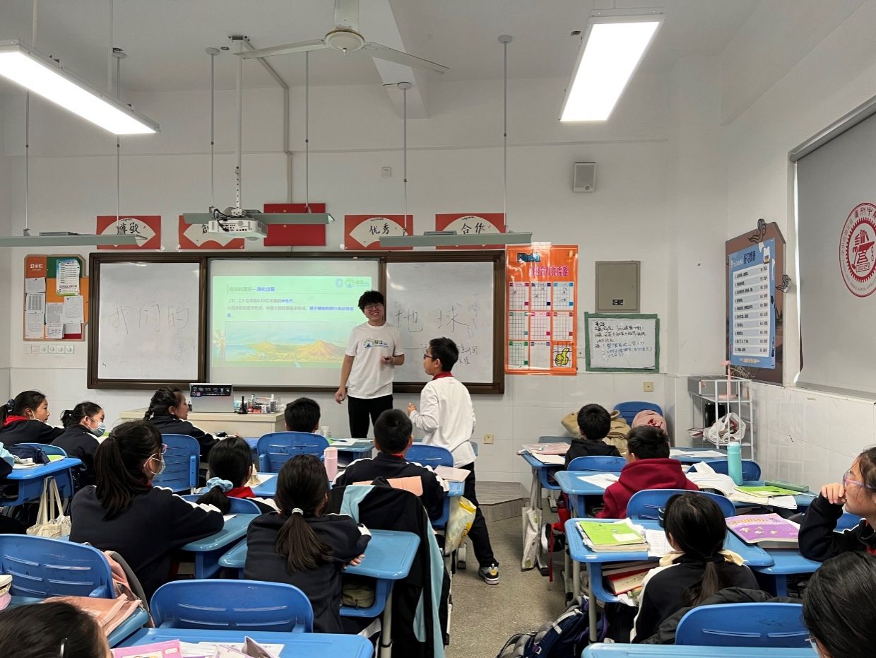 今天是我在交大附中德富路中学的第一次宣讲,我很荣幸能给六年级的小朋友带来一场生动的地球科普课,在繁忙的学习中带他们认识一个不一样的世界,扩展他们的知识面。我讲解的是地球的内部结构,当听到自己讲过的知识小朋友都能有效地吸收后,我心里很幸福很满足,希望下次还有机会带他们学习更多课外知识!