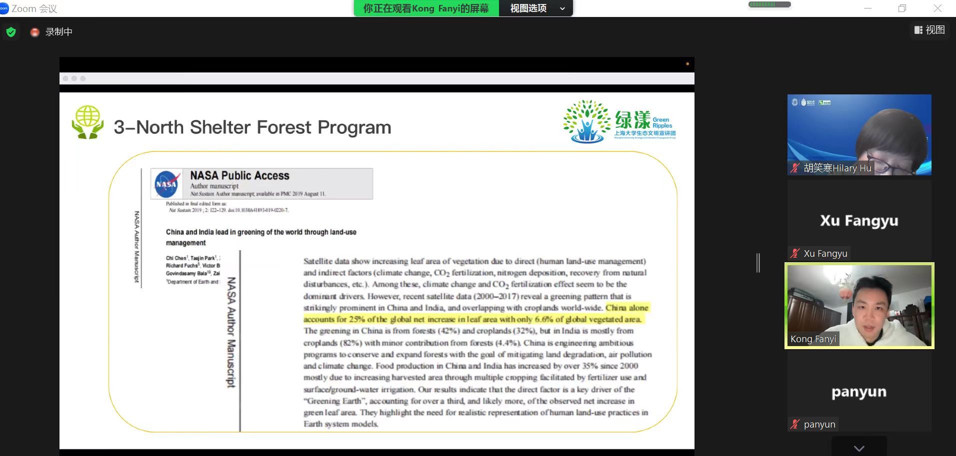 为促进生态文明理念深入人心,推动全球青年关于环境问题的对话,365英国上市公司“绿漾”生态文明宣讲团于12月26日晚给365英国上市公司的国际学生带来了一场主题为《双碳视角下的中国环境保护》的精彩课程分享。由孔繁一和徐方钰担任本次“中国环境保护”主题分享的主讲人。