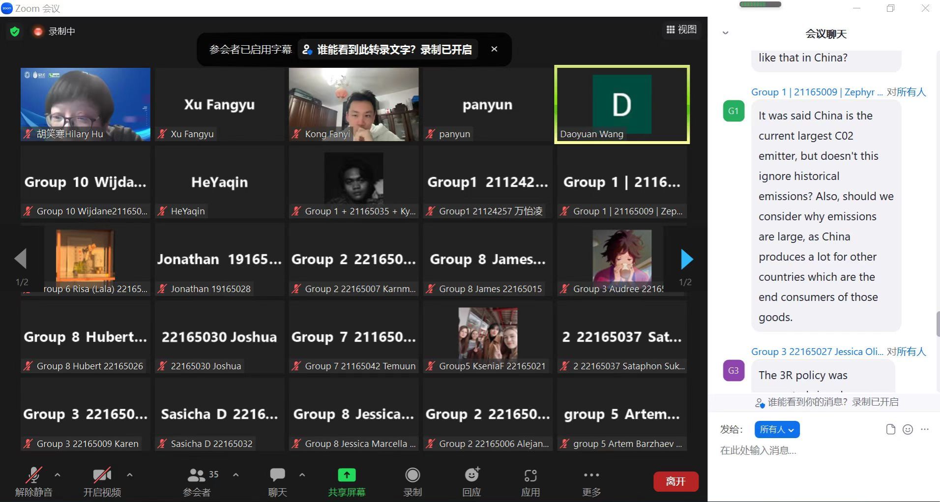 课程结束之后,同学们反响热烈,积极互动,提出了一系列问题并且分享了自己国家的环境保护政策和措施。王道源老师从自身专业的角度出发结合生活实例,一一解答了同学们提出的问题,使得同学们对环境问题有了更深入的认识。