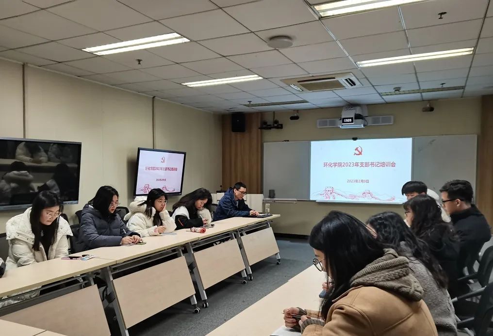 为深入学习贯彻党的二十大精神,进一步提升学生党支部书记的政治理论水平、业务素质和工作能力,夯实学生党支部党建工作基础,2月9日上午9:00,环化学院2023年春季支部书记培训会在环化楼902召开。环化学院党委副书记、副院长潘赟,党委组织员许毅,党建中心主任何雅琴等领导老师出席会议,学院全体党支部的支部书记和组织委员参加了此次培训会,会议由何雅琴老师主持。