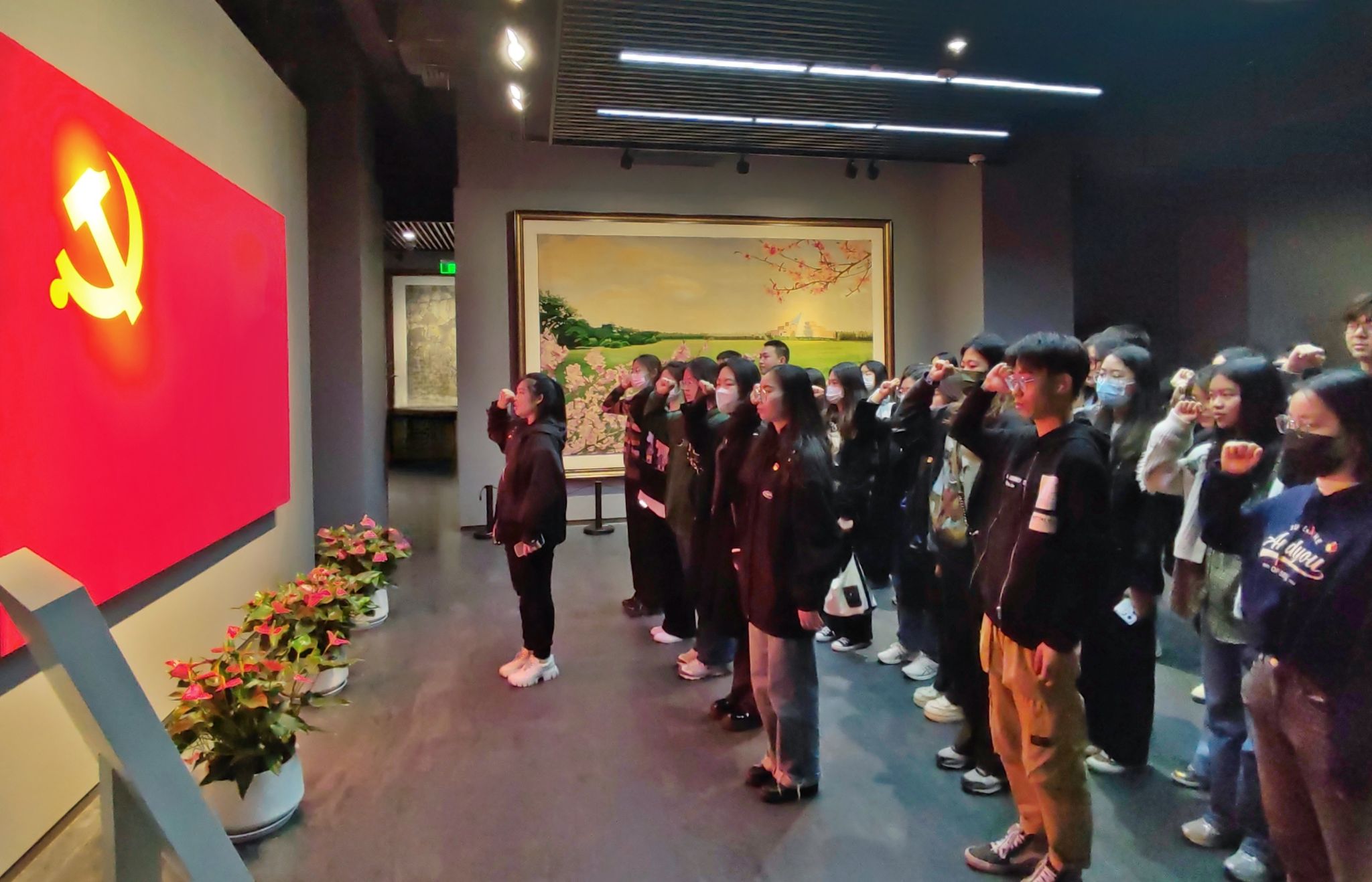 全体党员在刘佳欢同志的带领下,面对党旗,重温入党誓词,重忆入党初心。