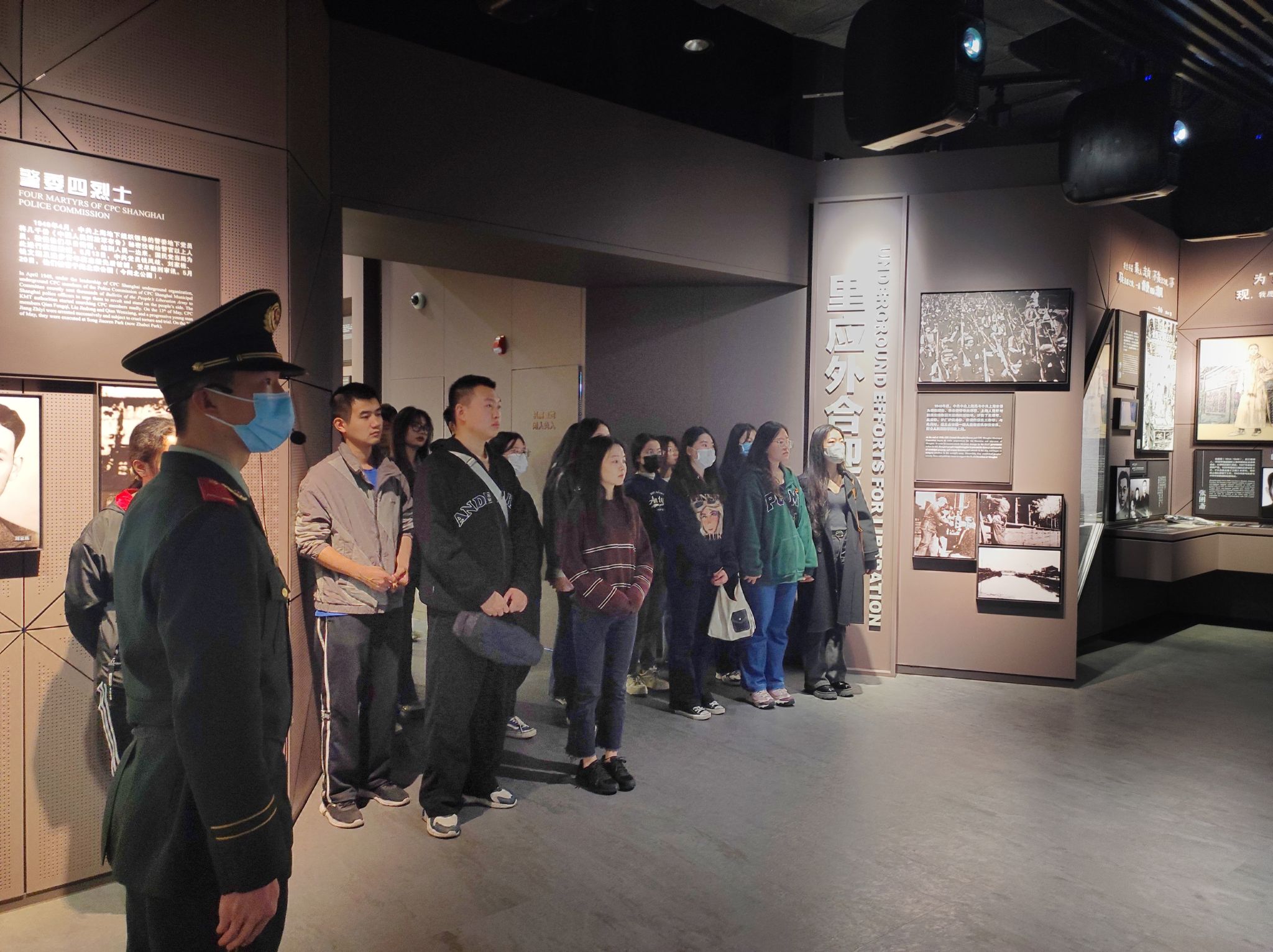 展区内容主要包括反对内战争取和平,里应外合迎接解放和电台三烈士、警委四烈士、解放上海牺牲的烈士的事迹。