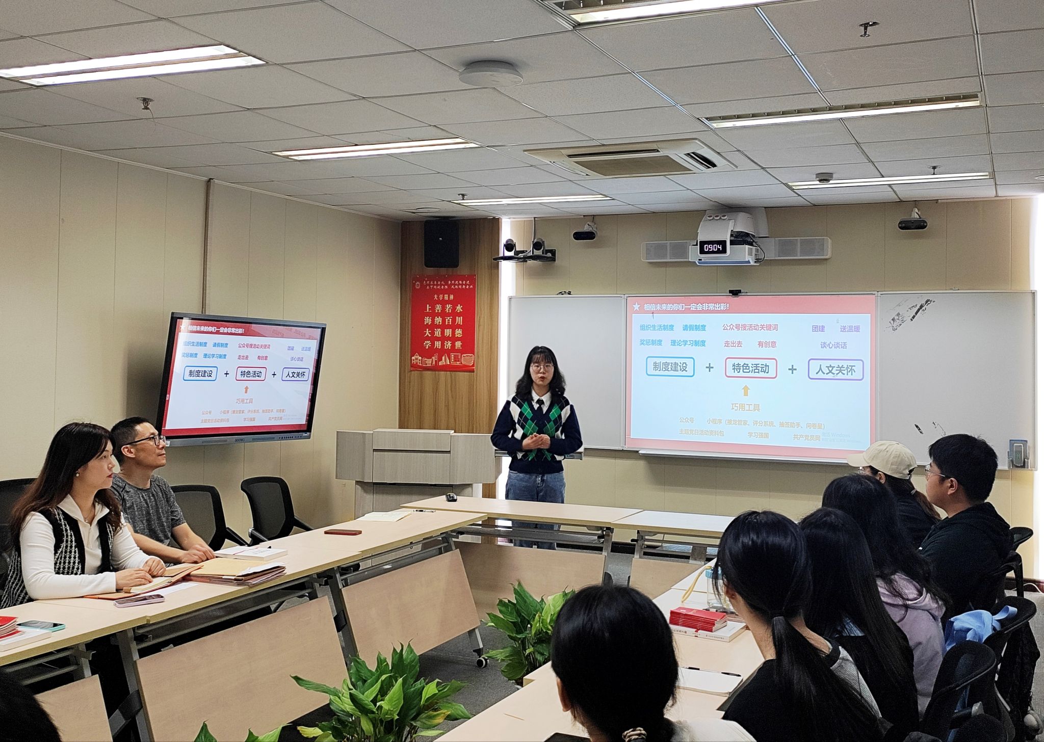 首先,支部书记孙怿对组织生活制度、请假制度、奖惩制度、理论学习制度的建立分享了自己的经验。她倡导大家在平时的党日活动开展中要充分利用上海的红色资源,运用好网络资源,将更多更好的学习资源融入到组织生活会中。最后,孙怿强调,谈心谈话是加深了解增进团结的重要保障,做好人文关怀,让每位党员在党支部中都能找到归属感。