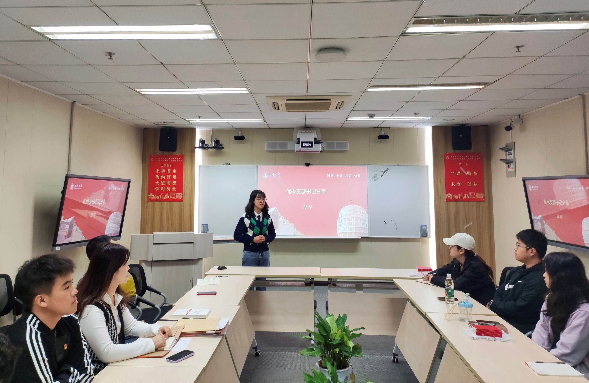 2021级研究生第二党支部书记孙怿作为优秀支部书记代表,围绕制度建设、特色活动、人文关怀三个方面进行了分享。