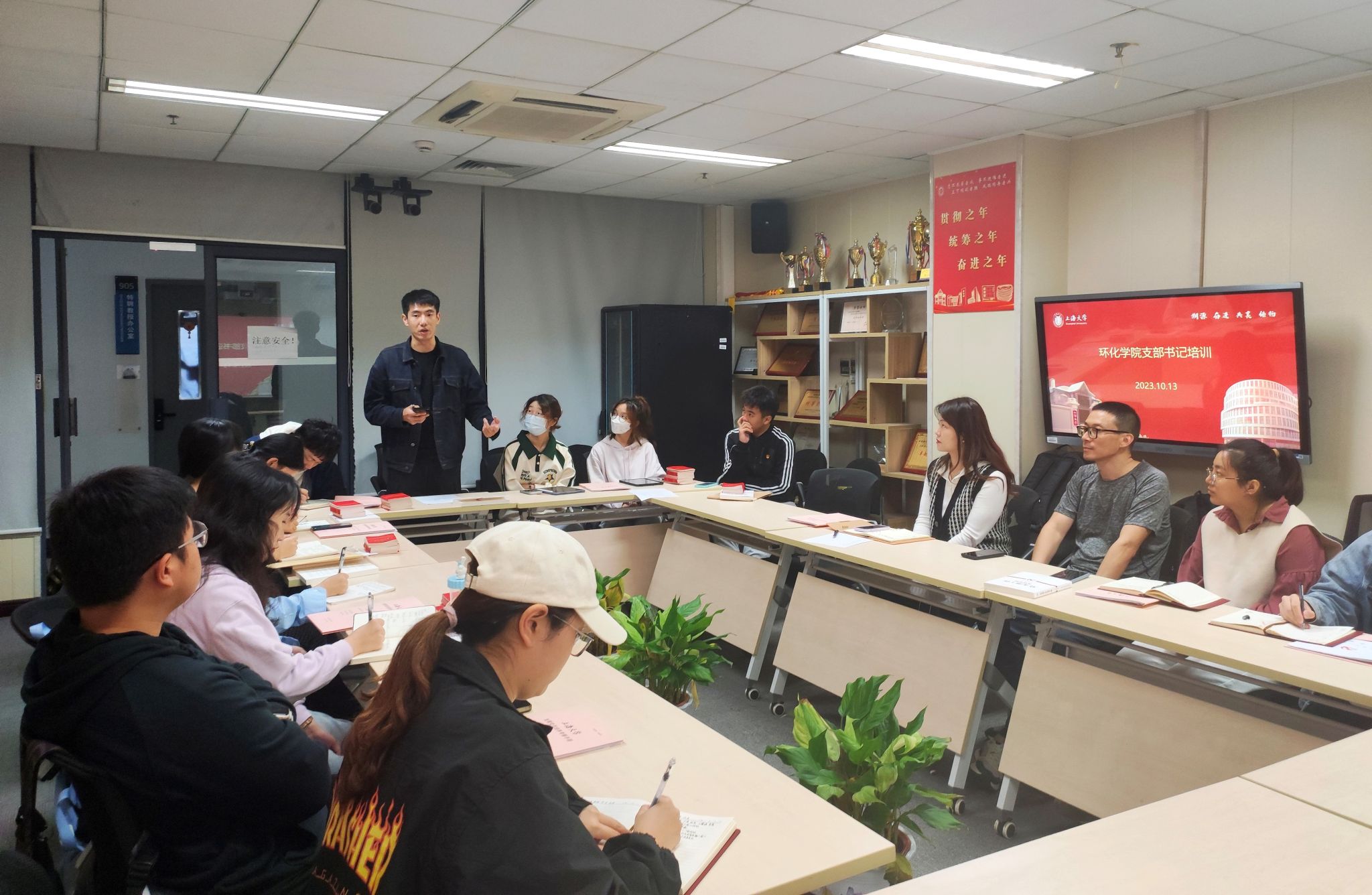 为深入学习贯彻党的二十大精神,进一步推进学院党建工作,提升研究生新生党支部书记理论水平、业务素质及工作能力,夯实学生党支部党建工作基础,10月13日上午9:00,环化学院2023级研究生支部书记培训会在环化楼902顺利召开。环化学院党委副书记、副院长潘赟,学院党委组织员许毅,党建中心主任何雅琴老师出席会议,2023级各党支部的支部书记和支委参加了此次培训会,会议由何雅琴老师主持。