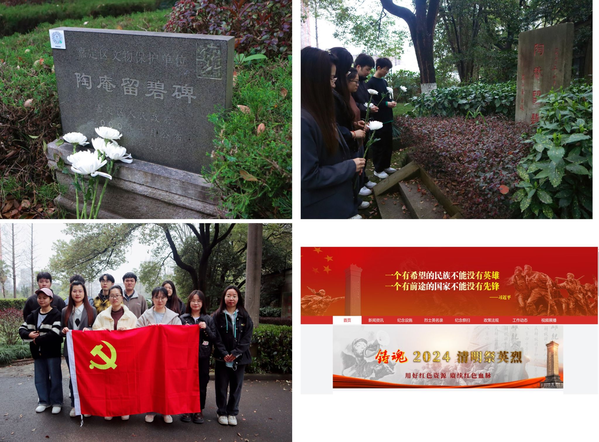 4月4日上午,2023级研究生环境一班党支部全体党员来到位于365英国上市公司嘉定校区内的陶庵留碧碑缅怀先贤。支部党员列队肃立于碑前,向革命英烈纪念碑敬献鲜花并默哀。随后支部通过“中华英烈网”线上平台,查找、了解烈士生平和先进事迹,并通过实景式默哀、敬献花圈等安全、绿色的仪式进行线上祭扫。