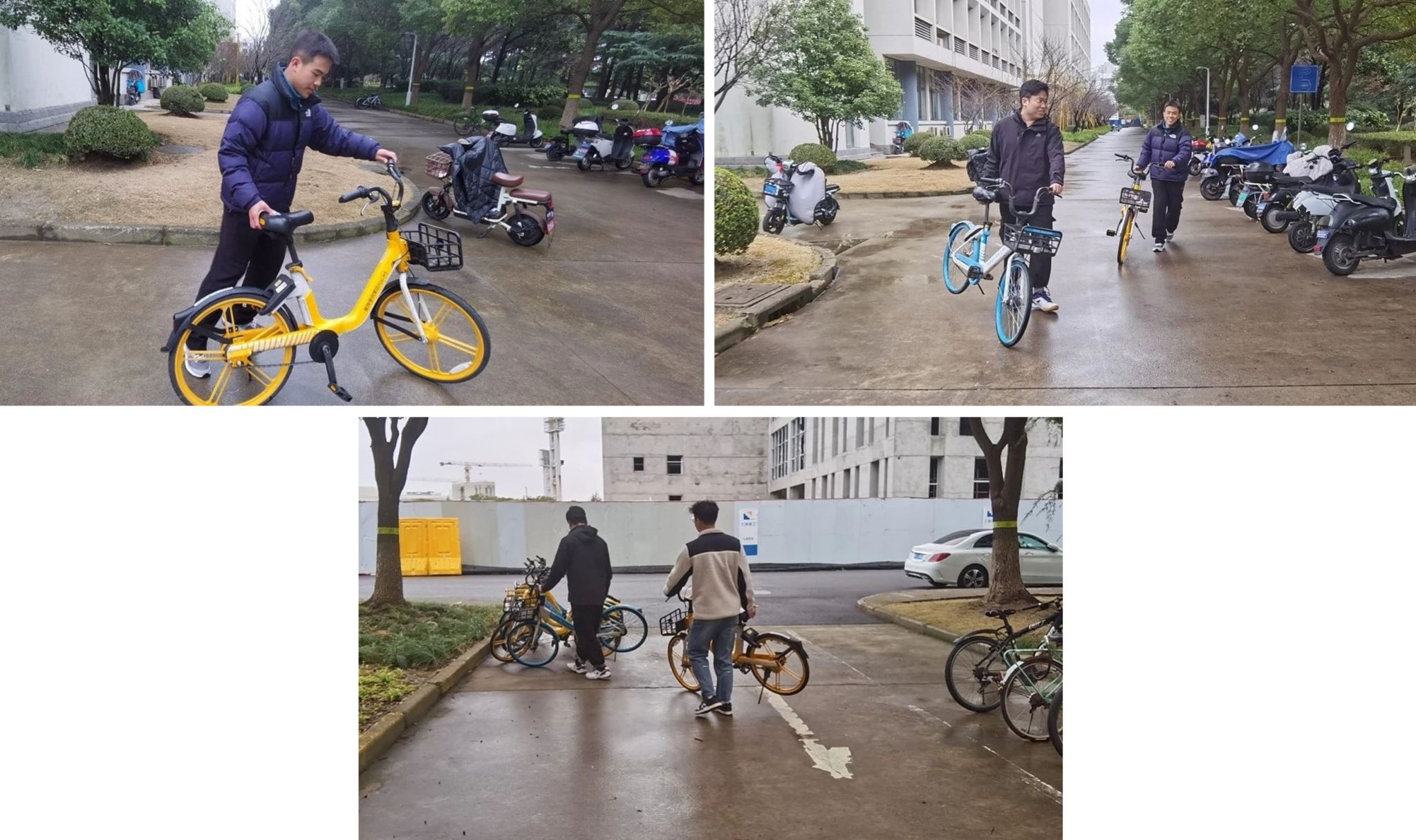 共享单车在给同学们带来便利的同时,也存在乱摆放、乱占道等不文明现象,既妨碍通行,也影响了校园的环境秩序与文明形象。学院组织志愿者对共享单车进行整理与摆放,进一步美化校园环境。