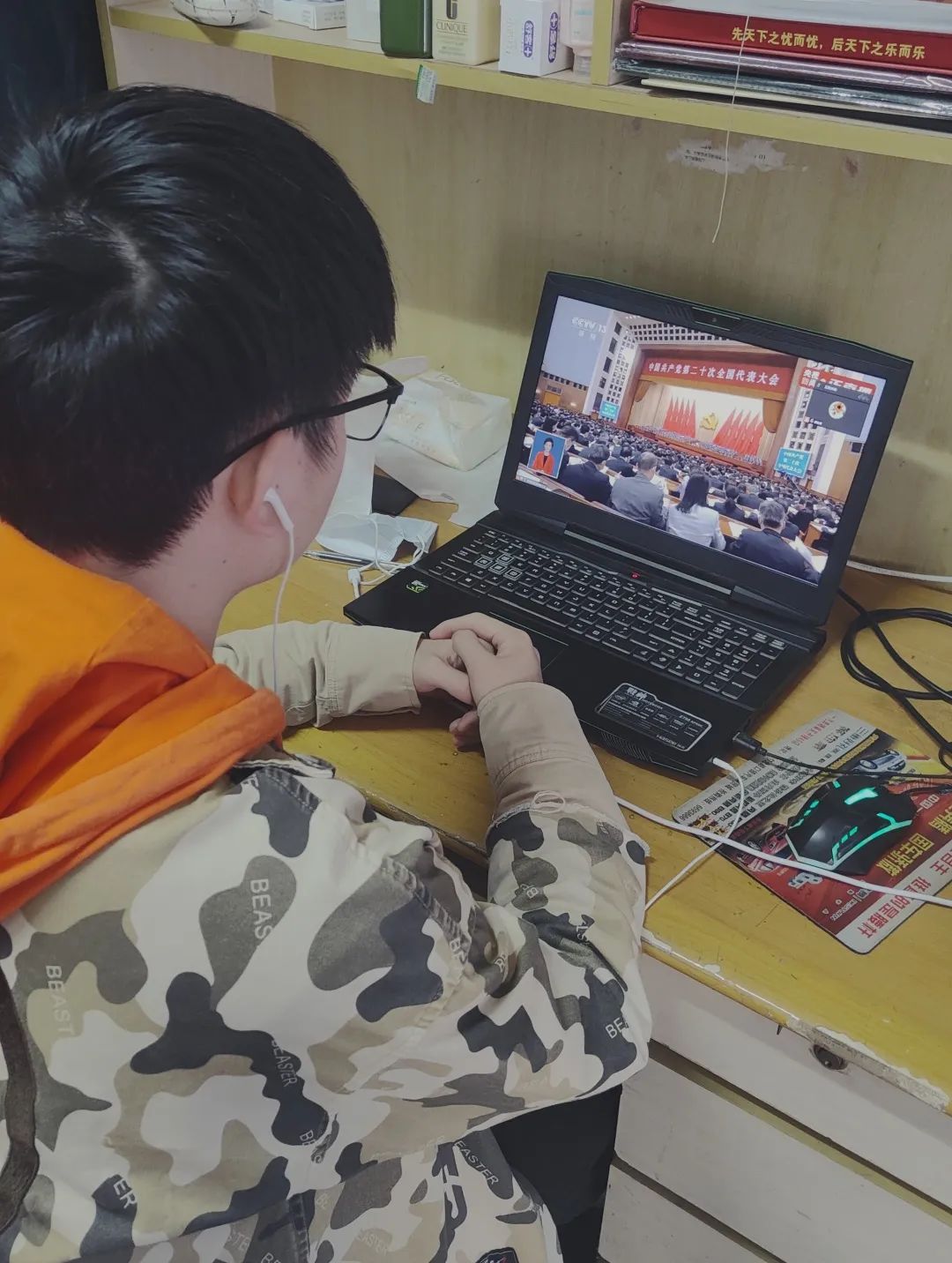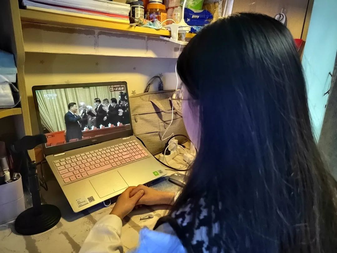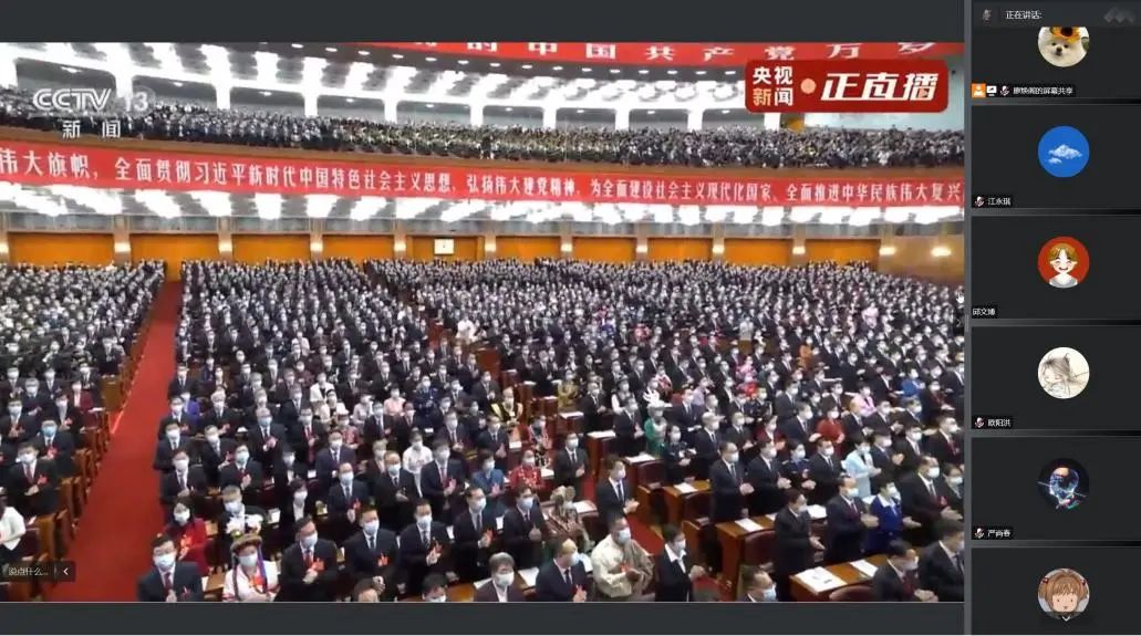 在学习完党代会的相关理论知识后,党支部全体成员在线上共同观看了党的二十大开幕会。