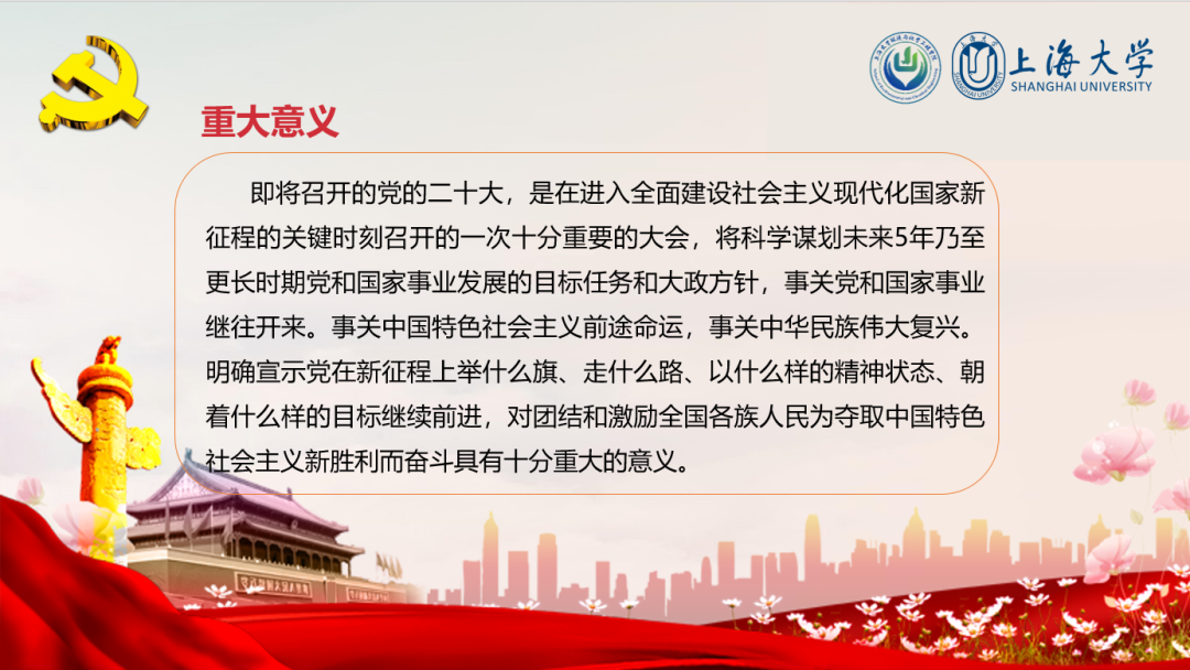 随后对二十大的重大意义展开进一步的学习,党的二十大是在进入全面建设社会主义现代化国家新征程的关键时刻召开的一次十分重要的大会,这事关党和国家事业继往开来,事关中国特色社会主义前途命运,事关中华民族伟大复兴。