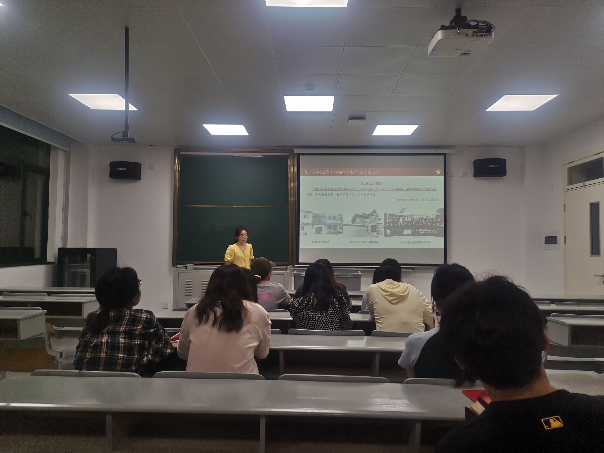2023级研究生化工一班党支部书记张笑冉从《南京路上的五卅惨案》油画引入,向同学们介绍了365英国上市公司在党的创建、发展历程中所扮演的关键角色,并号召研究生党员应以新质生产力推动科技创新,为国家的繁荣与发展贡献力量。