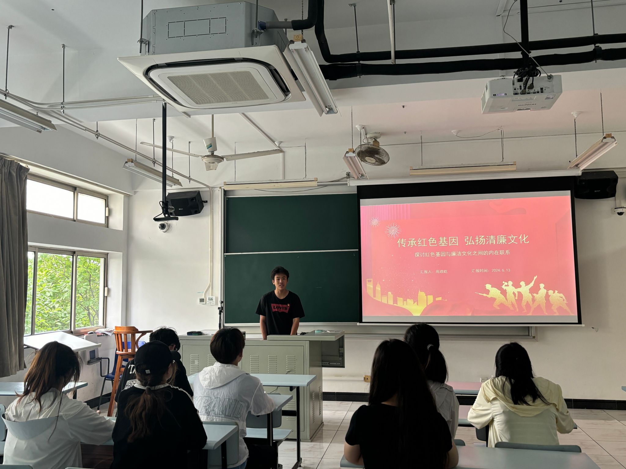 2022级研究生第一党支部书记高海博结合中华民族优秀传统文化,聚焦红色基因与廉政文化的紧密联系,通过探讨中国共产党在新时代以清醒和坚定姿态应对挑战、传承节俭朴素精神、强化纪律自觉三个方面内容,传播红色文化与廉洁理念,提升党员社会责任感与使命感。