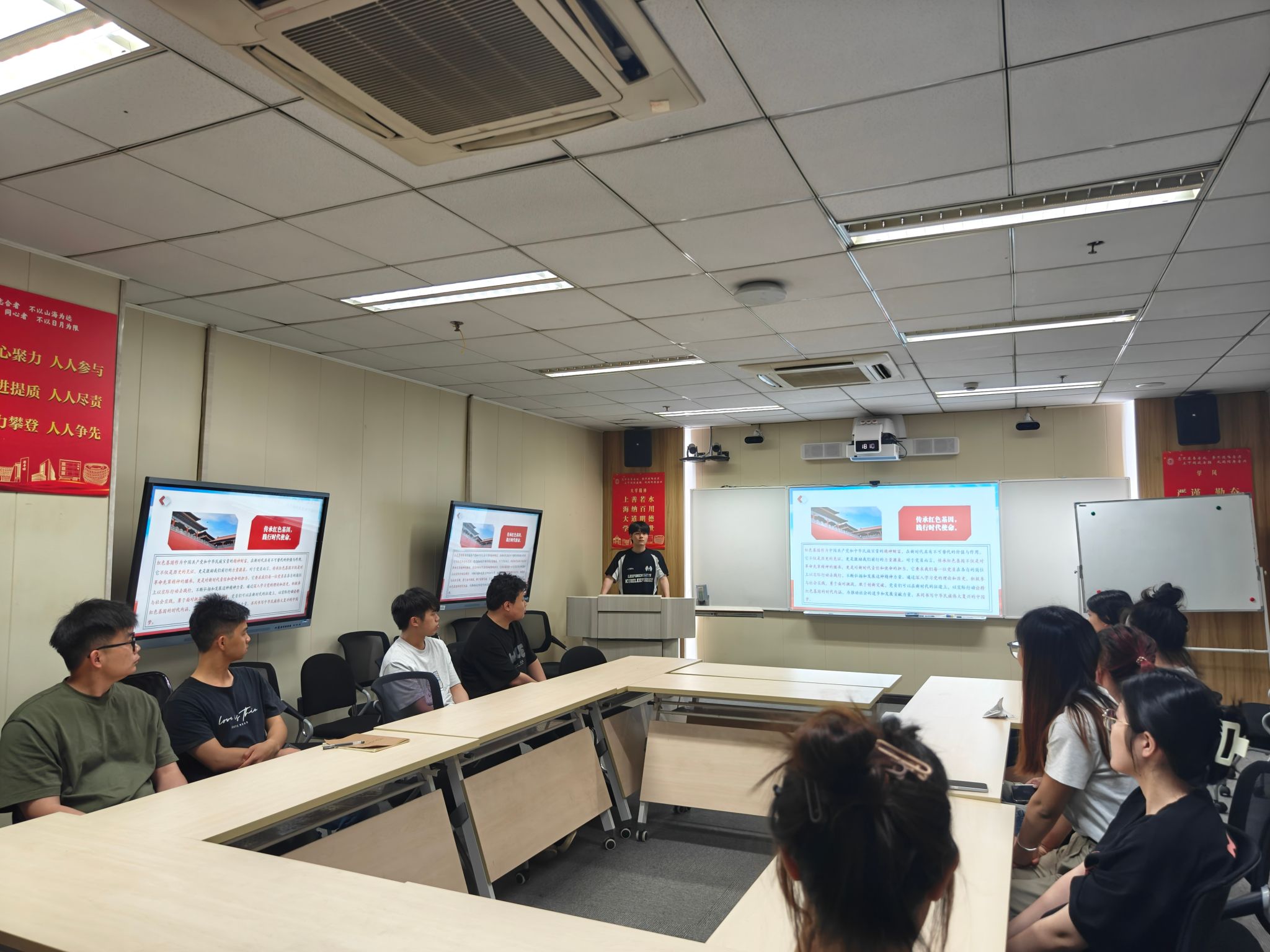 2022级研究生第二党支部副书记江永琪围绕“红色基因定义与重要性”、“新时代背景下的传承意义”两个方面进行了精彩的讲解,强调了红色基因的重要性以及新时代赋予青年党员的历史使命。