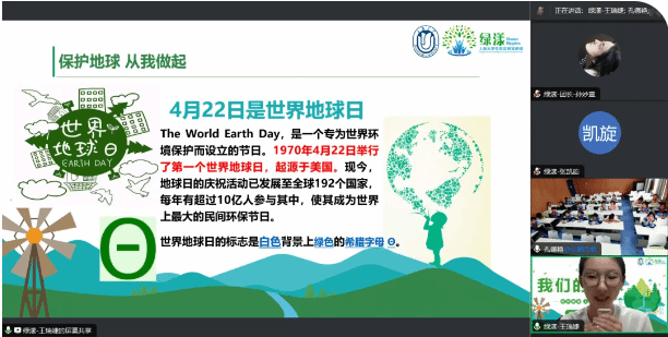 最后,讲师王瑞婕告诉同学们4月22日是世界地球日,并发问“为什么要有‘地球日’?,以此引出现在的地球污染状况十分严重,警示同学们要保护地球。
