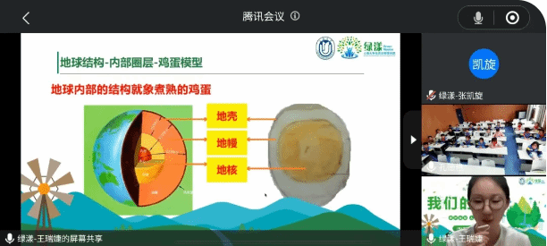接下来,讲师王瑞婕用“鸡蛋模型”引入关于地球结构的讲解,带领同学们认识地球内部圈层的划分和特点。