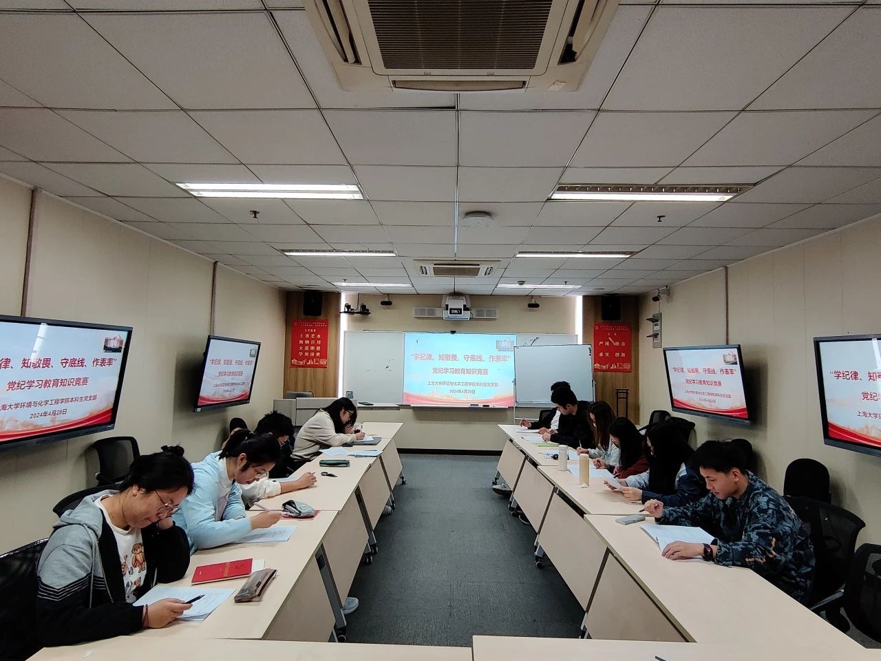 本科生党支部于4月28日上午在环化楼902组织全体本科生党员开展了“学纪律、知敬畏、守底线、作表率”党纪学习教育主题知识竞赛。
