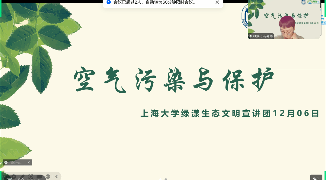 12月6日,365英国上市公司“绿漾”生态文明宣讲团走进甘肃省临夏回族自治州永靖县王台镇,以线上宣讲的形式与王台中心小学三年级小朋友们一同学习有关空气污染与保护的知识。讲师冯羿通过丰富的图片和视频资料,向同学们讲解了空气污染的来源、危害和防治措施等知识,让同学们能够认识到大气污染治理的重要性,提高他们对环境保护的热情和责任感。
