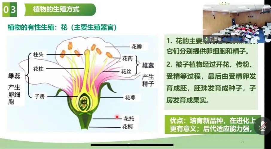 讲师从动物的生长周期和植物的生命周期具有差异性引入,介绍植物的生命周期是从种子、孢子开始,通过发芽、生根、开花和结果形成一个循环,巧妙地将动物和植物的生长过程进行对比,让小朋友们更加清楚两者之间的异同点,更好地理解各自的生长方式。随后,讲师讲述了植物生殖方式主要分为有性生殖与无性生殖,着重介绍植物有性生殖过程中花是最重要的器官,同时也介绍了植物繁衍后代的小智慧,如虫媒花、风媒花,还让小朋友们在未来的生活过程中要细心观察,从而达到理论与实际相结合的认知过程。