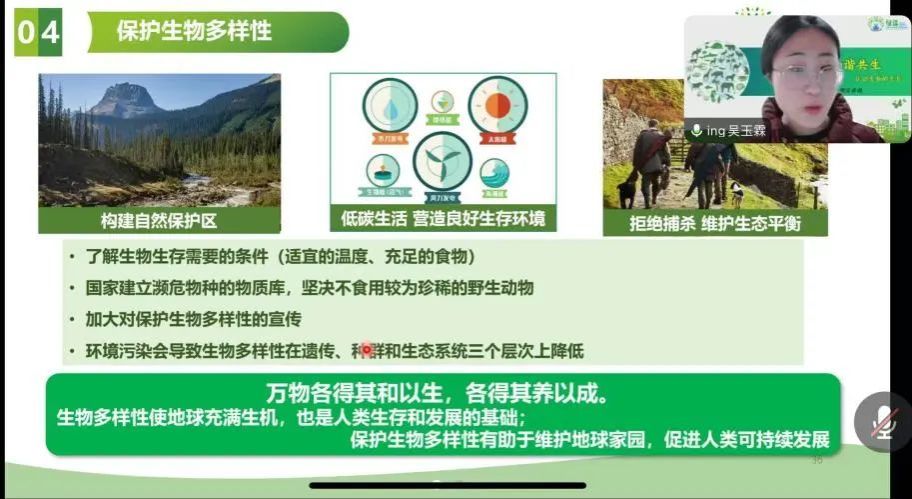 最后,讲师进行知识点大框架总结回顾,巩固本节课的知识点,并呼吁小朋友们要保护好生物多样性,保护好生物的生存环境,守护美好家园。