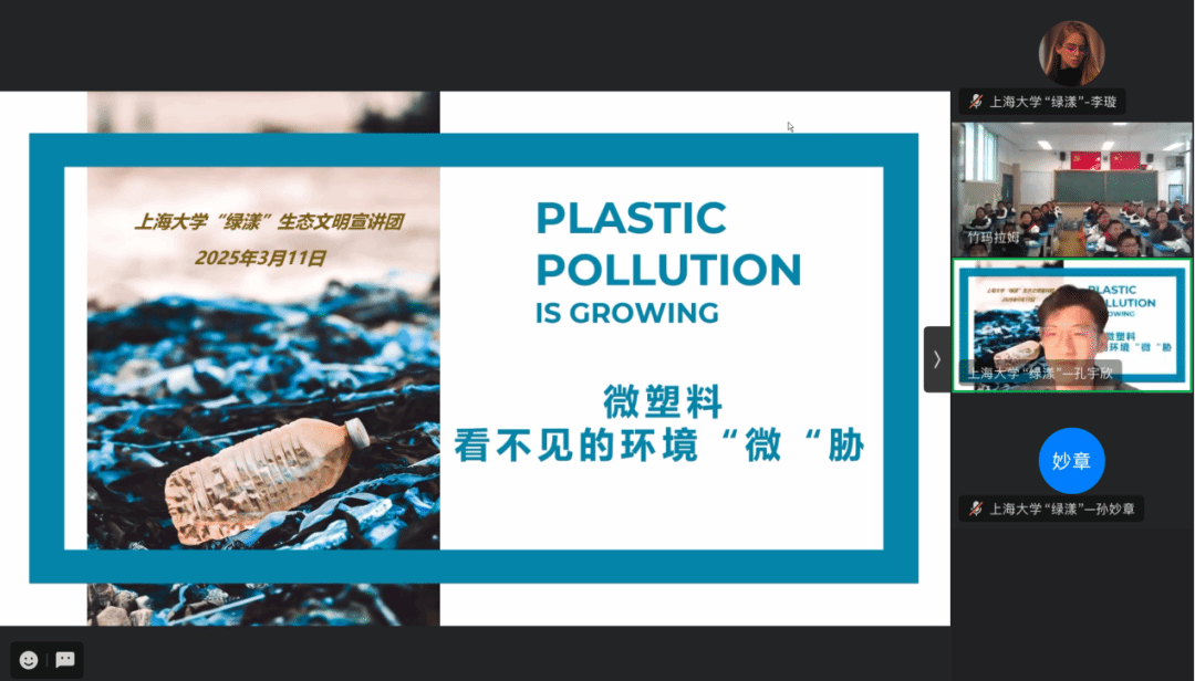 最后,讲师以“环保减塑,为地球减负”为号召作为本次课堂的结尾,在了解微塑料危害的同时,呼吁同学们在生活中做好垃圾分类,进一步强化了同学们对于新时代环境保护的认识。