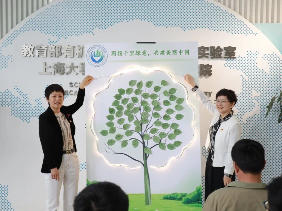 为深入贯彻落实习近平总书记关于“绿水青山就是金山银山”的理念,响应国家关于“碳达峰”、“碳中和”的号召,将新时代生态文明建设的核心价值转化为生动实践,我院于4月22日——第56个世界地球日当天,在环化楼一楼大厅举办了 “同捐千里绿意,共建美丽中国” 公益捐树活动,正式拉开第十七届环保节的序幕。本次活动旨在汇聚各方力量,为祖国西北的甘肃省定西市种植云杉树,为西部生态文明建设添砖加瓦,助力实现美丽中国的宏伟目标。环化学院党委书记钱冬英带领班子成员和“绿漾”党支部全体党员出席了此次认捐仪式。出席本次活动的还有上海市普陀区生态环境局、普陀区环境监测站、普陀区生态环境局执法大队等部门领导。活动由环化学院2023级研究生孙妙章与2024级研究生孔宇欣主持。