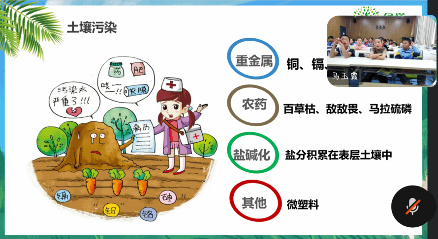 课堂伊始,讲师为大家介绍了土壤和土壤污染的定义,进而引出污染土壤的修复。讲师抛出问题:“大家知道什么是植物修复吗?”在孩子们好奇的目光中,讲师揭晓答案:“这些植物就像土壤里的‘吸尘器’,能把重金属'吃'进身体里!”紧接着,讲师通过展示污染土壤的照片以及植物修复的相关视频,让同学们直观认识到工业废水、农药残留对土地的危害以及什么是植物修复技术。