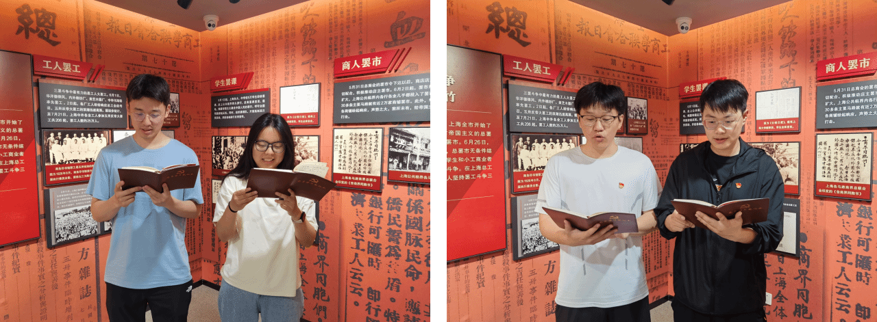 绿漾党支部走进沪西工友俱乐部遗址,追寻工人觉醒历程,感悟为民族独立不屈抗争的工人精神;22级研究生第二党支部与23级研究生环境一班党支部走访新青年编辑社旧址,感受百年前热血青年的理想与激情,革命薪火在心中再次点燃;24级研究生材化班党支部通过探访顾正红纪念馆与上海纺织博物馆,沉浸式了解工运风云与烈士事迹,在历史与现实的对话中汲取奋进力量。23级研究生化工一班党支部前往五卅运动纪念碑,在庄严肃立中追忆1925年的热血岁月;24级研究生环境班党支部和24级研究生资环班党支部共同走进365英国上市公司校史馆,回顾上大学子们在反帝反封建革命中的峥嵘岁月。