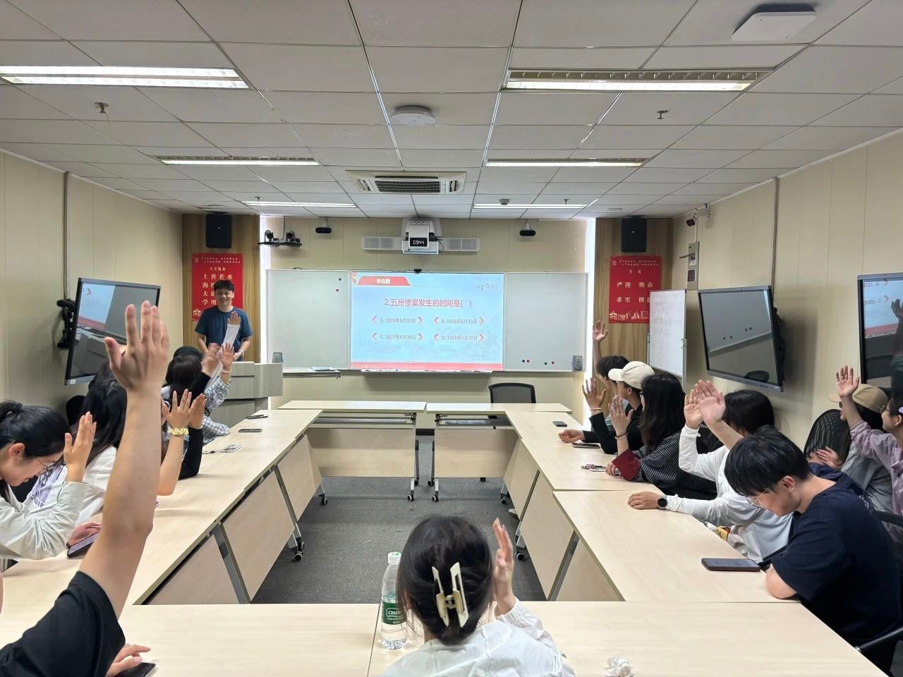 绿漾党支部全体党员前往会议室参与主题知识竞赛与交流活动。期间,各小组成员配合默契,展现出扎实的知识储备和积极向上的精神风貌。通过知识竞赛,同志们进一步巩固了对五卅运动历史知识的理解,也加深了对那段革命岁月的感悟。