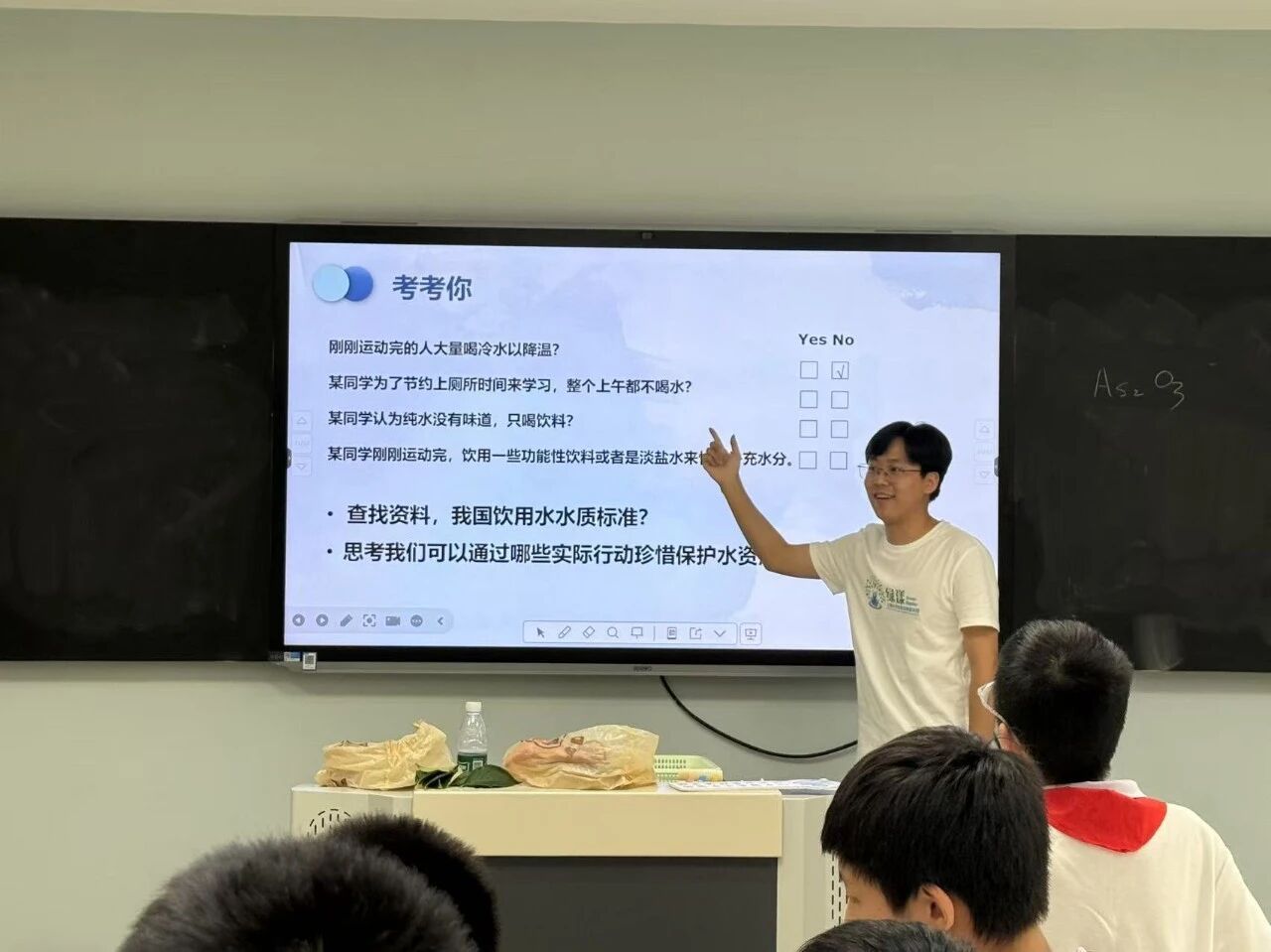 为引导初中生认识到水资源的珍贵性与保护水环境的重要性,此次初中部课程以“水质与饮用水”为主题,从“水是生命之源”入手,再深入讲解水污染的来源与危害,展示了水的重要性和淡水资源的稀缺性,了解了工业废水、重金属污染等对生态环境和人体健康的严重影响,让学生直观感受到水污染带来的严重后果。学生们不仅了解到水资源的价值,更意识到每个人在保护水资源中的责任。